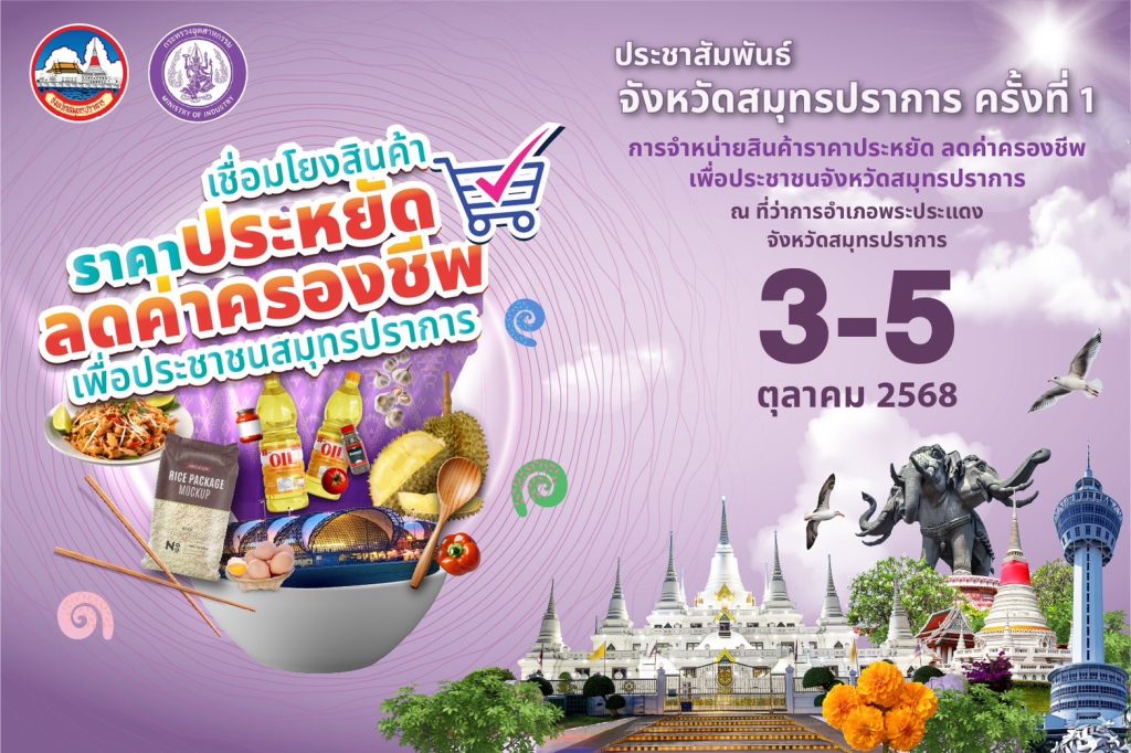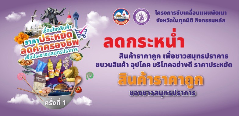 จังหวัดสมุทรปราการ ขอเชิญเที่ยวชม ชิม ช้อป กิจกรรมงาน “เชื่อมโยงสินค้า ราคาประหยัด ลดค่าครองชีพ เพื่อประชาชนสมุทรปราการ ครั้งที่ 1”