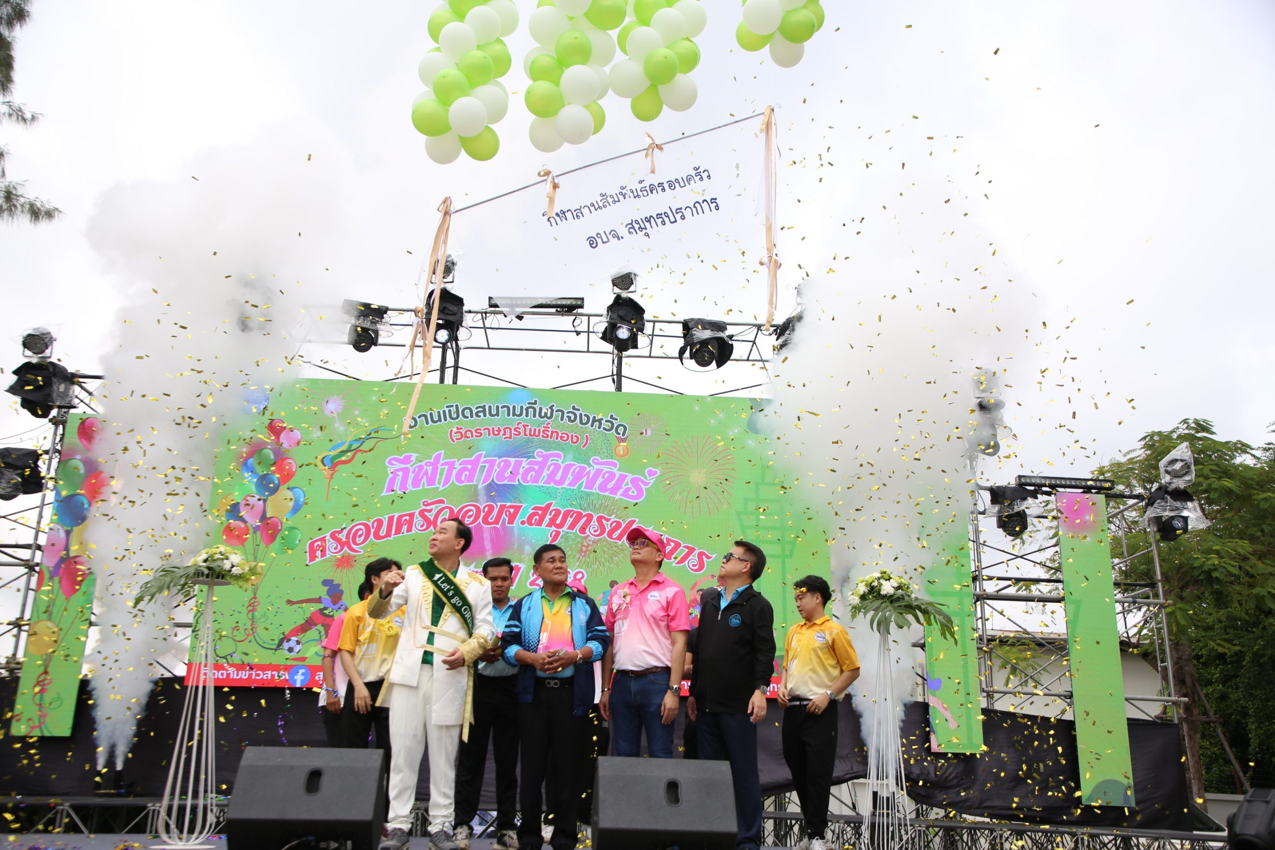 เมื่อวันที่ 4 ตุลาคม ที่สนามกีฬา อบจ.สมุทรปราการ ซอยวัดราษฎร์โพธิ์ทอง ตำบลท้ายบ้าน อำเภอเมือง จังหวัดสมุทรปราการ องค์การบริหารส่วนจังหวัดสมุทรปราการ จัดการแข่งขันกีฬาสานสัมพันธ์ครอบครัว อบจ.สมุทรปราการ ประจำปี 2568 โดยมีนายสุนทร ปานแสงทอง นายก องค์การบริหารส่วนจังหวัดสมุทรปราการ เป็นประธานกล่าวเปิดงาน และมี นายสิทธิชัย เกษรสิทธิ์ ปลัด อบจ.สมุทรปราการ กล่าวรายงาน ทั้งนี้ เพื่อสร้างความสัมพันธ์ ความรัก และความสามัคคีระหว่างคณะผู้บริหาร สมาชิกสภา อบจ.หัวหน้าส่วนราชการ และฝ่ายกองงานต่างๆ กิจกรรมเหล่านี้ช่วยเสริมสร้างความเข้าใจ ความผูกพัน และการทำงานเป็นทีมขององค์การบริหารส่วนจังหวัดสมุทรปราการ โดยบรรยากาศภายในงานมีขบวนพาเหรดจากวัดราษฎร์โพธิ์ทองเข้าสู่สนามกีฬา อบจ.ประกอบไปด้วย สีเหลือง ภายใต้การดูแลของนายสิทธิชัย เกษรสิทธิ์ ปลัด อบจ.สมุทรปราการ สีฟ้า นายวรพร อัศวเหม รองนายก อบจ.สมุทรปราการ สีเขียว นายอัครวัตน์ อัศวเหม รองนายก อบจ.สมุทรปราการ และ สีชมพู ภายใต้การดูแลของนายต่อศักดิ์ อัศวเหม รองนายก อบจ.สมุทรปราการ