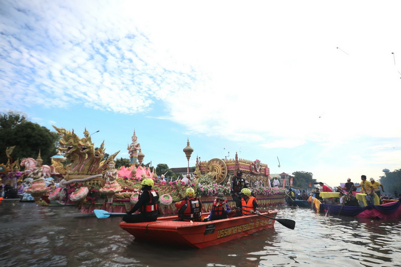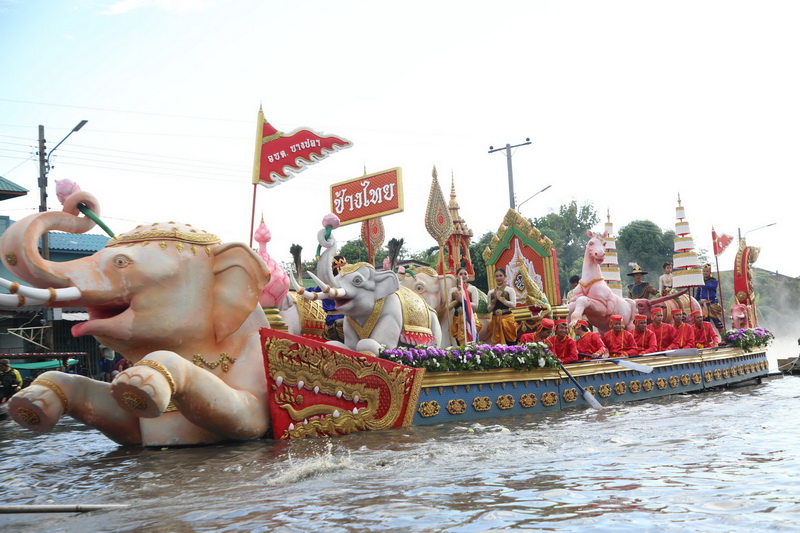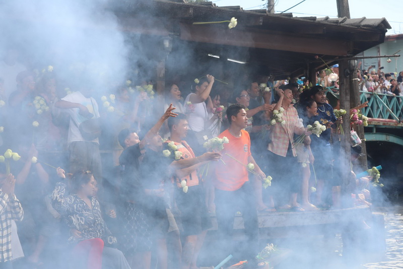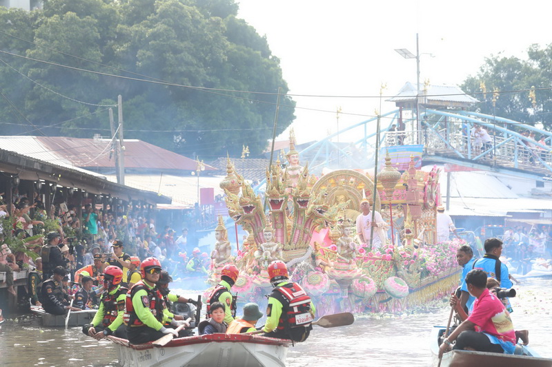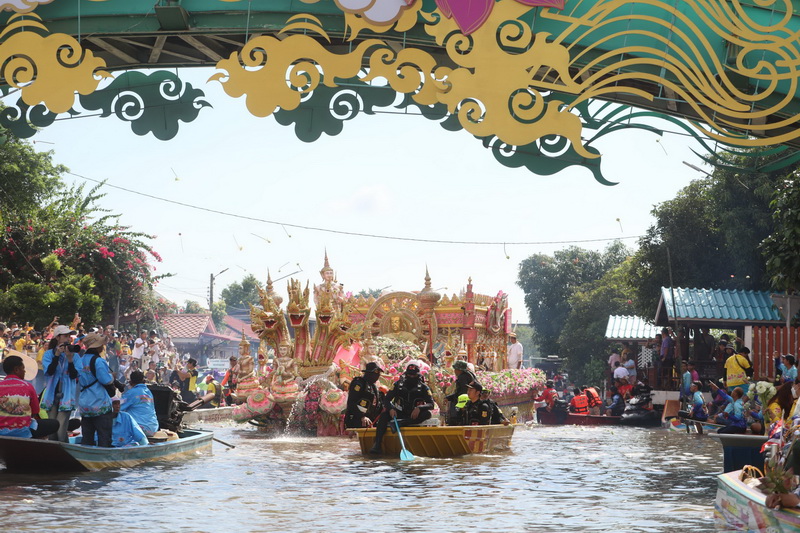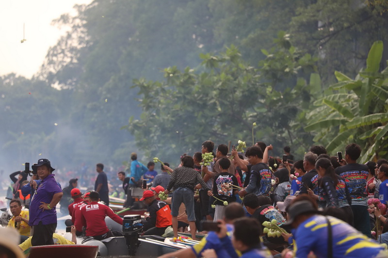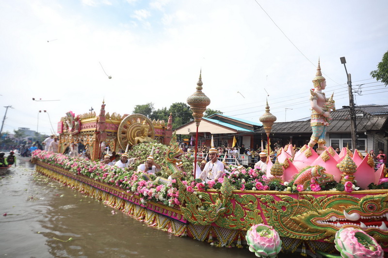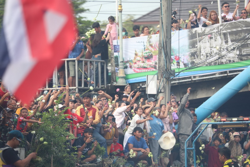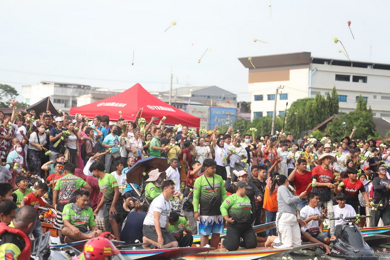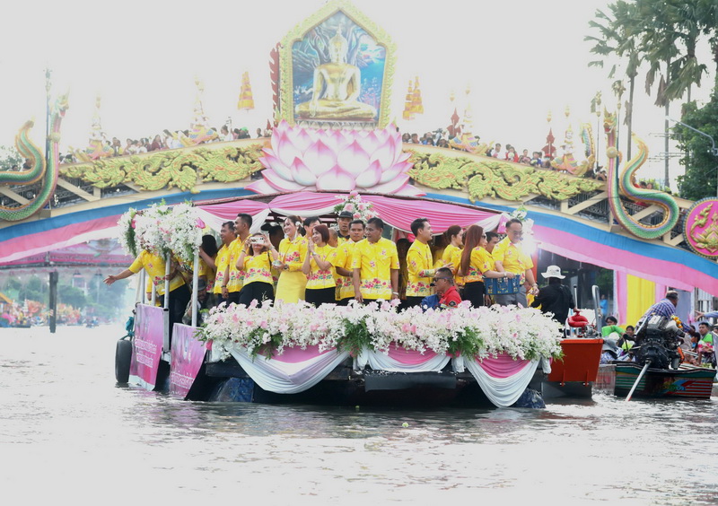 โดยขณะที่ นายสุนทร ปานแสงทอง นายกองค์การบริหารส่วนจังหวัดสมุทรปราการ พร้อมคณะผู้บริหาร .อบจ.ก็ได้ล่องเรือในคลองสำโรง เพื่อโยนข้าวต้มมัด น้ำดื่ม ไข่ต้ม ให้กับประชาชนริมสองฝั่งคลองสำโรง ซึ่งบรรยากาศเป็นไปด้วยรอยยิ้มและความอบอุ่น โดยมีขบวนเรือแห่จากหน่วยงานต่างๆ เข้าร่วมขบวนจำนวนมาก นอกจากนี้ ผู้ว่าราชการจังหวัดสมุทรปราการ ได้ร่วมแจกข้าวต้มมัดแก่ผู้มาร่วมงานประเพณีรับบัว เป็นประเพณีเก่าแก่ที่สืบทอดกันมาตั้งแต่โบราณของชาวอำเภอบางพลี จังหวัดสมุทรปราการ ซึ่งจะจัดขึ้นทุกวันขึ้น 14 ค่ำ เดือน 11 ของทุกปีโดยจะมีการอัญเชิญหลวง พ่อโตองค์จำลอง จากวัดบางพลีใหญ่ใน มาลงเรือตกแต่งอย่างสวยงามด้วยดอกไม้ และล่องไปตาม คลองสําโรง เพื่อให้ชาวบ้านได้สักการะ โดยมีความเชื่อว่า หากอธิษฐานแล้วโยนบัวลงเรือที่ประดิษฐานหลวงพ่อโตจะทำให้คำอธิษฐานประสบความสำเร็จ สมปรารถนา ตามที่ได้ขอพรไว้