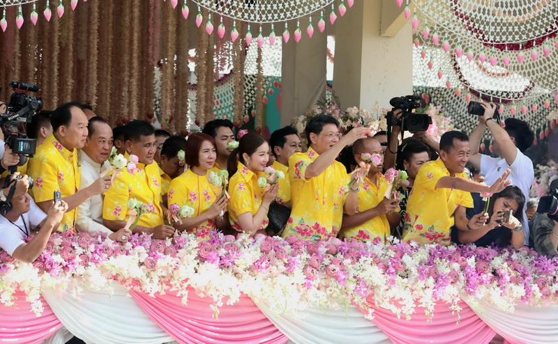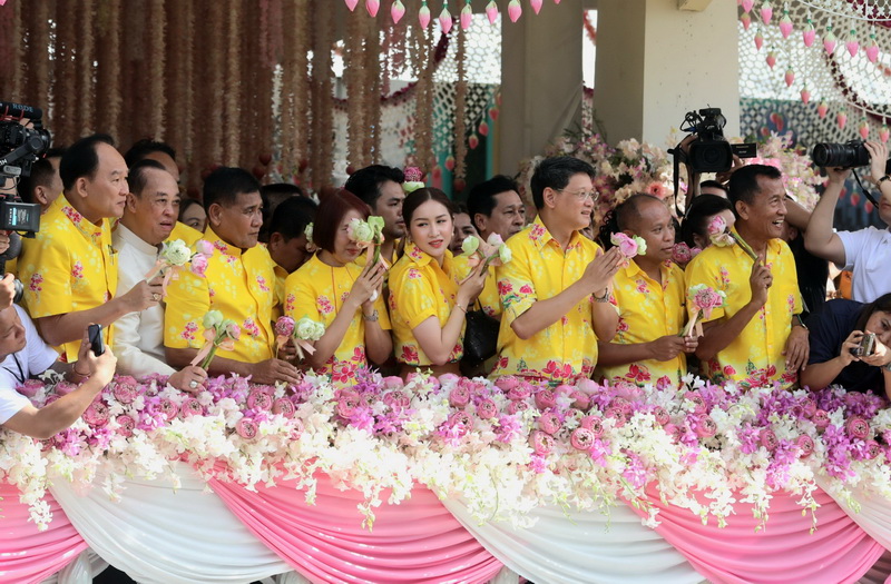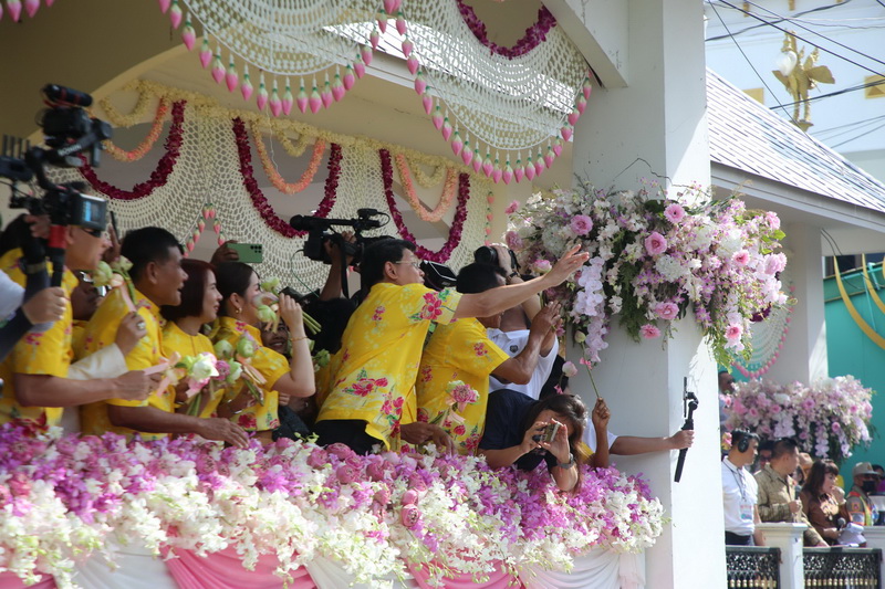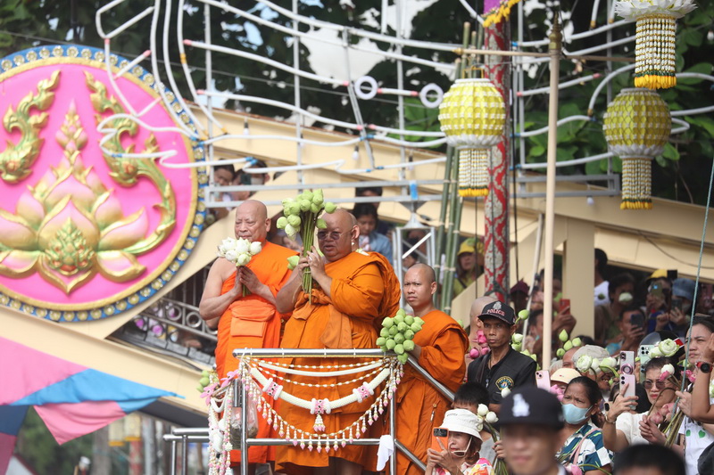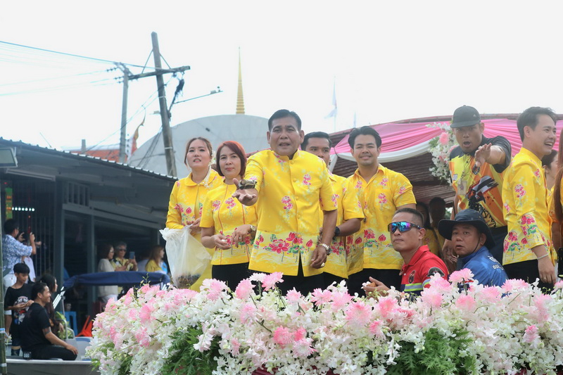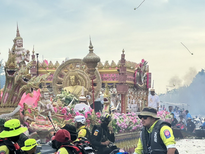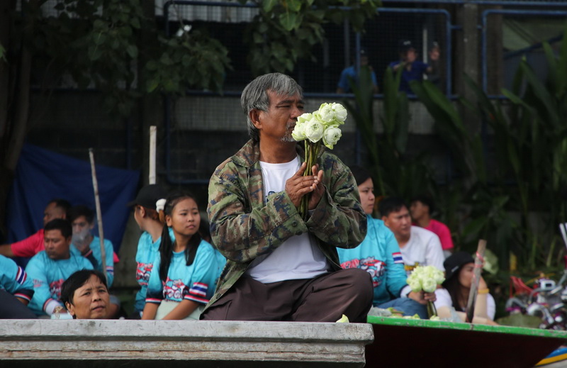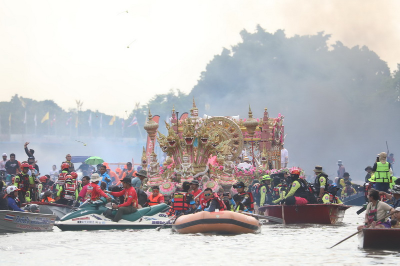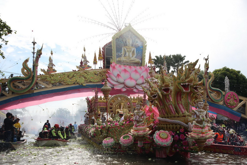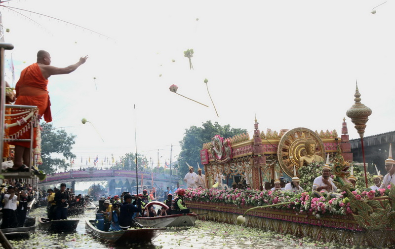 โดยขณะที่ นายสุนทร ปานแสงทอง นายกองค์การบริหารส่วนจังหวัดสมุทรปราการ พร้อมคณะผู้บริหาร .อบจ.ก็ได้ล่องเรือในคลองสำโรง เพื่อโยนข้าวต้มมัด น้ำดื่ม ไข่ต้ม ให้กับประชาชนริมสองฝั่งคลองสำโรง ซึ่งบรรยากาศเป็นไปด้วยรอยยิ้มและความอบอุ่น โดยมีขบวนเรือแห่จากหน่วยงานต่างๆ เข้าร่วมขบวนจำนวนมาก นอกจากนี้ ผู้ว่าราชการจังหวัดสมุทรปราการ ได้ร่วมแจกข้าวต้มมัดแก่ผู้มาร่วมงานประเพณีรับบัว เป็นประเพณีเก่าแก่ที่สืบทอดกันมาตั้งแต่โบราณของชาวอำเภอบางพลี จังหวัดสมุทรปราการ ซึ่งจะจัดขึ้นทุกวันขึ้น 14 ค่ำ เดือน 11 ของทุกปีโดยจะมีการอัญเชิญหลวง พ่อโตองค์จำลอง จากวัดบางพลีใหญ่ใน มาลงเรือตกแต่งอย่างสวยงามด้วยดอกไม้ และล่องไปตาม คลองสําโรง เพื่อให้ชาวบ้านได้สักการะ โดยมีความเชื่อว่า หากอธิษฐานแล้วโยนบัวลงเรือที่ประดิษฐานหลวงพ่อโตจะทำให้คำอธิษฐานประสบความสำเร็จ สมปรารถนา ตามที่ได้ขอพรไว้