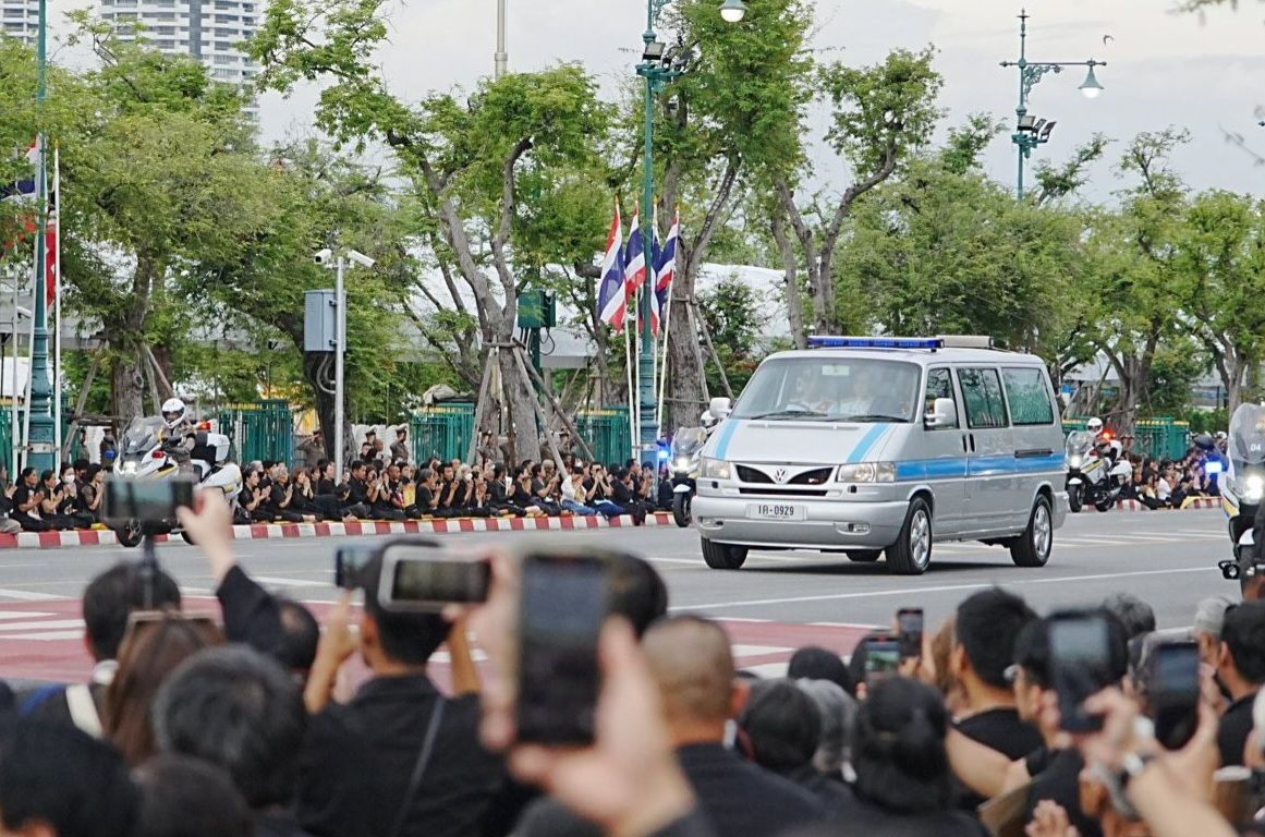 เมื่อเวลา 16.26 น. วันที่ 26 ต.ค. ขบวนรถเชิญพระบรมศพสมเด็จพระนางเจ้าสิริกิติ์ พระบรมราชินีนาถ พระบรมราชชนนีพันปีหลวง ออกจากโรงพยาบาลจุฬาลงกรณ์ สภากาชาดไทย ไปยังพระบรมมหาราชวัง มีรถสมเด็จพระมหาวีรวงศ์ นำขบวน ตามด้วยรถเชิญพระบรมศพ และขบวนรถพระที่นั่งของพระบาทสมเด็จพระเจ้าอยู่หัว และพระบรมวงศานุวงศ์ โดยมีพสกนิกรทุกหมู่เหล่าจากทั่วสารทิศ แต่งกายไว้ทุกข์สีดำ เดินทางมาร่วมเฝ้าส่งเสด็จ เป็นจำนวนมาก