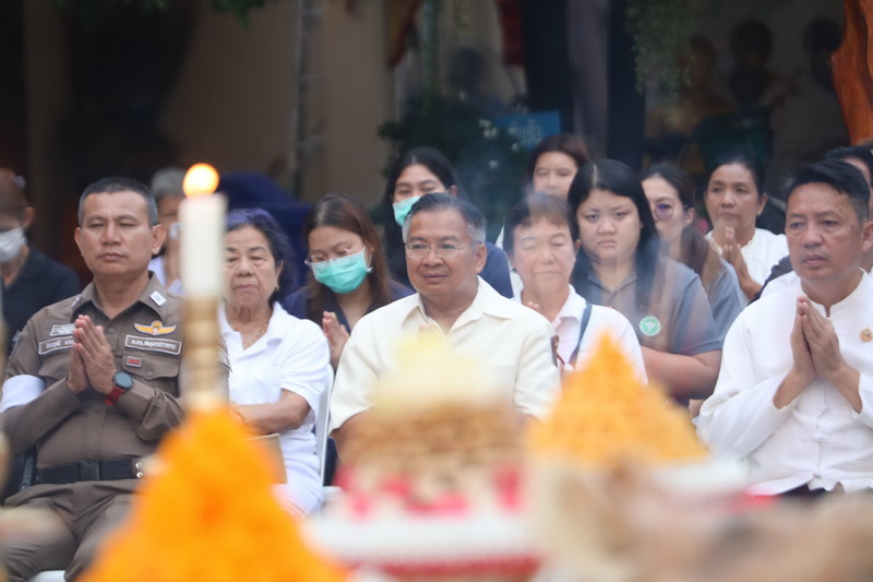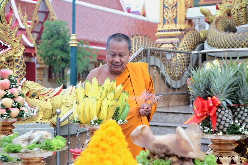 พระวชิรคณาทร (ท่านเจ้าคุณแจ้)เจ้าอาวาส วัดบางพลีใหญ่กลาง ทำพิธีบวงสรวงผ้าแดง ก่อนแห่ขึ้นห่มองค์พระมหาเจดีย์พิศาลวุฒิกิจมงคลมหาชนบูชิต