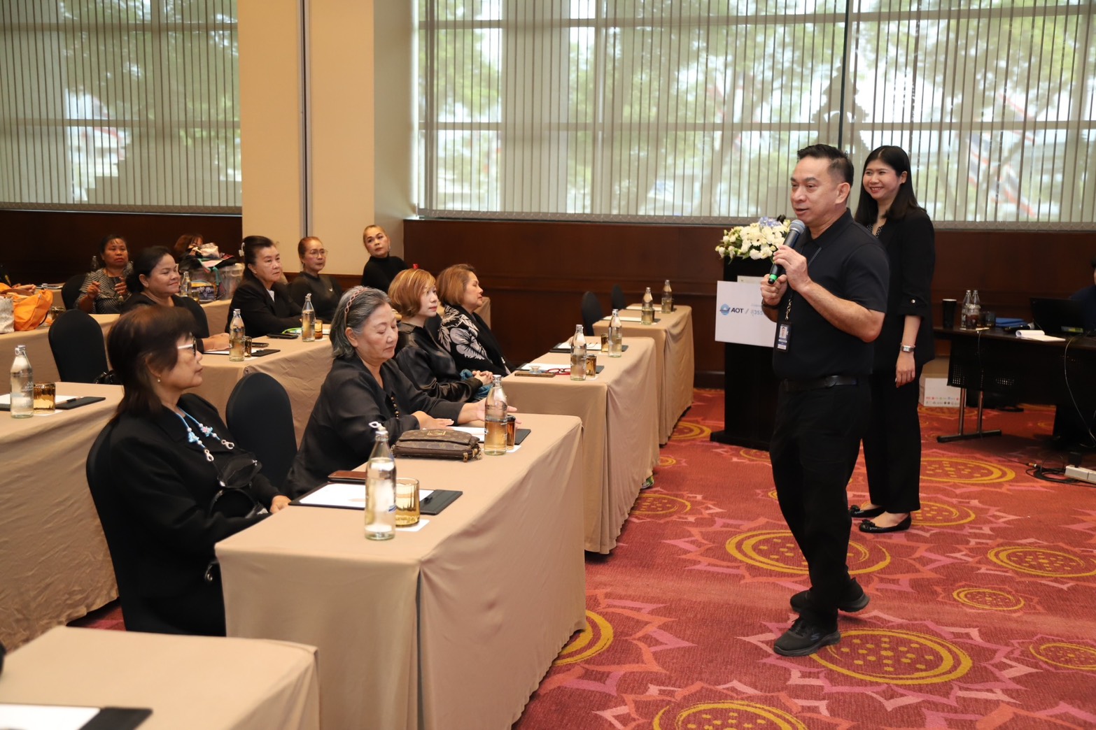 จัดฝึกอบรมให้กับผู้เข้าร่วมโครงการจำนวน 40 คน จากทั้งหมด 5 ชุมชน ได้แก่ ชุมชนเคหะร่มเกล้าโซน 1, ชุมชนเคหะร่มเกล้าโซน 5, ชุมชนหมู่บ้านพัฒนาทิพพาวาส, ชุมชนคลองชวดลากข้าว ต.บางพลีใหญ่ (กลุ่มแม่บ้านหมู่ 15) และชุมชนกลุ่มผ้าทอมือ ต.บางเสาธง ในระหว่างวันที่ 6 – 7 พฤศจิกายน 2568 ณ โรงแรมไฮแอทรีเจนซี่ กรุงเทพ สุวรรณภูมิ