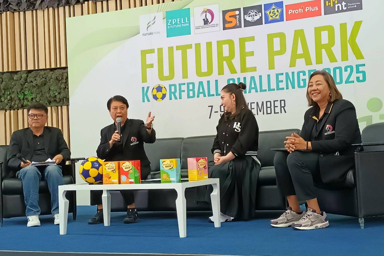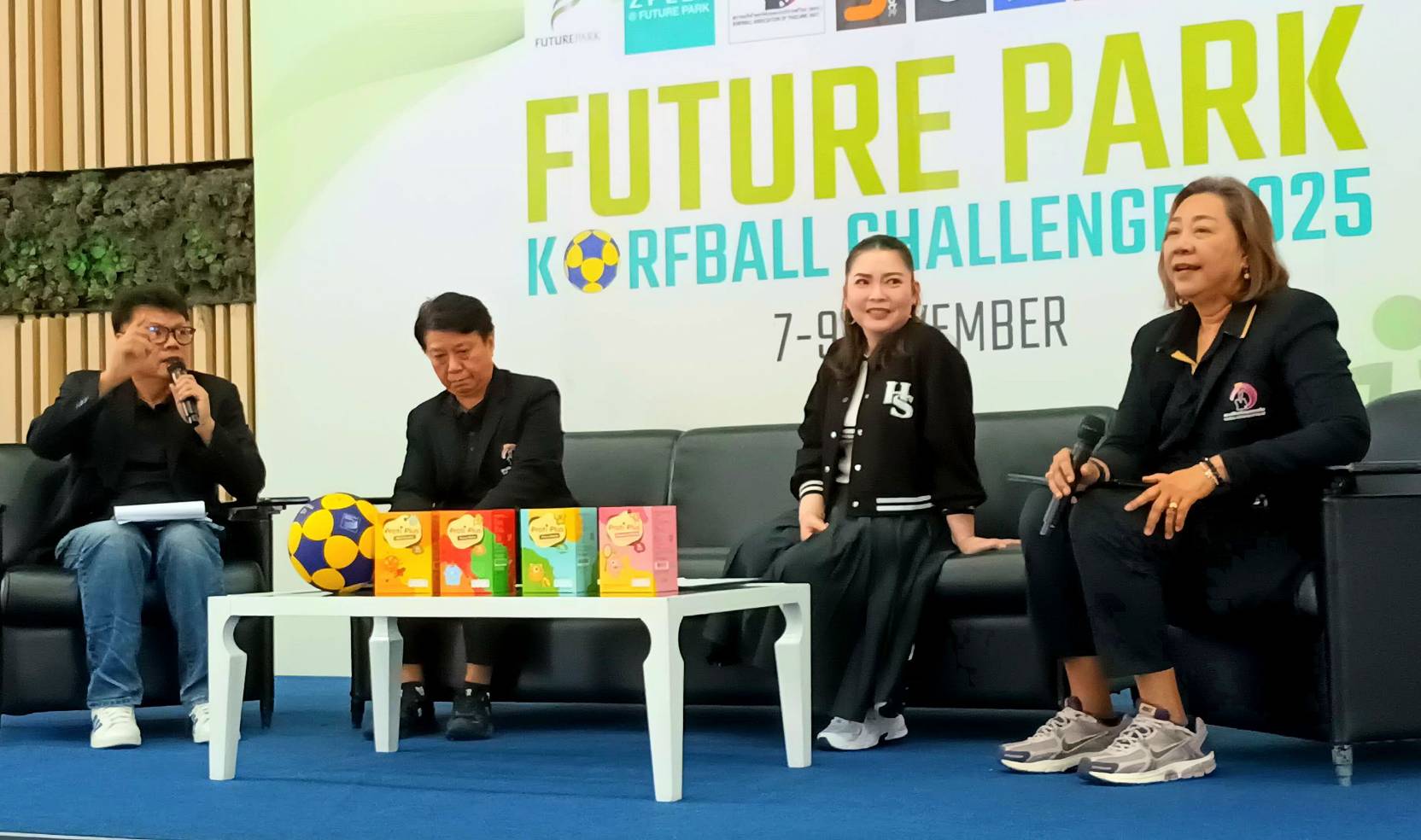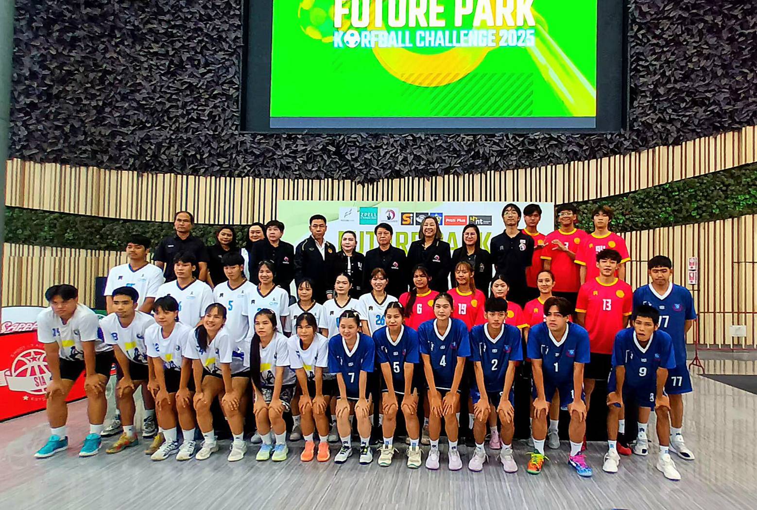 รองศาสตราจารย์ ดร.สุปราณี ขวัญบุญจันทร์ นายกสมาคมกีฬาคอร์ฟบอลแห่งประเทศไทย พร้อมด้วย ดร.เนตรทราย วงศ์อุปราช อุปนายกสมาคมกีฬาคอร์ฟบอลแห่งประเทศไทย และ ผู้แทนจาก มหาวิทยาลัยการกีฬาแห่งชาติ, มหาวิทยาลัยธรรมศาสตร์, มหาวิทยาลัยธุรกิจบัณฑิตย์, มหาวิทยาลัยนอร์ทกรุงเทพ และ คุณกัลยา กมลรัตน ผู้อำนวยการด้านการตลาด ศูนย์การค้าฟิ วเจอร์พาร์ครังสิต นักกีฬาเยาวชนทีมชาติไทย ผู้เข้าร่วมให้เกียรติในงานแถลงข่าว การแข่งขัน “Future Korfball Challenge 2025” ระหว่างวันที่ 7-9 พฤศจิกายน ณAlive Park Hall ชั้น G ศูนย์การค้าฟิวเจอร์พาร์ค รังสิต พร้อมทั้งเปิดตัวนักกีฬาคอร์ฟบอลทีมชาติไทย ในเวลาเดียวกันอีกด้วย