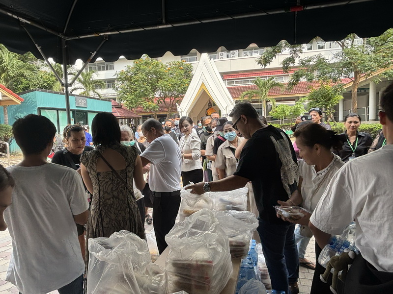 วันที่ 12 พฤศจิกายน 2568 ที่ลานเอนกประสงค์โรงพยาบาลสมุทรปราการ คุณสุพิชฌาย์ สินธวรนันท์ หรือคุณอ้อ ผู้บริหารร้านประจำ90 หมูกระทะ&คราฟเบียร์ ซึ่งตั้งอยู่ในซอยวัดหลวงพ่อโต อำเภอบางพลี จังหวัดสมุทรปราการ พร้อมด้วยคุณอรรถพันธ์ สินธวรนันท์ และครอบครัว ได้ร่วมกันจัดกิจกรรมบำเพ็ญกุศลโดยการนำข้าวกล่องและน้ำดื่ม จำนวน 600 ชุด มาแจกจ่ายให้กับประชาชนที่เดินทางมารักษา พร้อมกับผู้ป่วย ผู้พิการ ร่วมถึงเจ้าหน้าที่โรงพยาบาล เพื่อเป็นการอุทิศถวายสมเด็จพระนางเจ้าสิริกิติ์ พระบรมราชินีนาถ พระบรมราชชนนีพันปีหลวง ที่พระองค์ท่านเสด็จสวรรคต โดยมี นางสาวอภิรดี การะเกด รองผู้อำนวยการฝ่ายบริหาร พร้อมเจ้าหน้าที่โรงพยาบาลสมุทรปราการ ร่วมให้การต้อนรับ