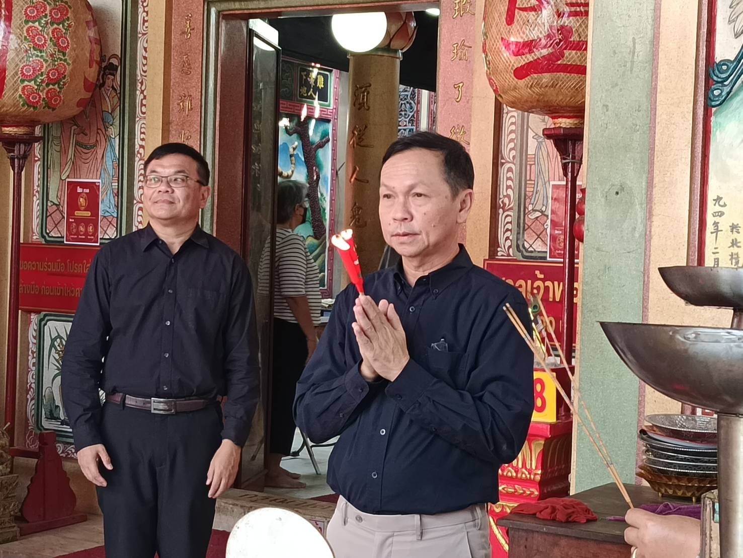 หลังเดินทางมาถึง นายศุภมิตร ชิณศรี ผู้ว่าราชการจังหวัดสมุทรปราการ และ นางอรวรรณ ชิณศรี นายกเหล่ากาชาดจังหวัดสมุทรปราการ ได้เดินทางเข้าสักการะศาลเจ้าพ่อหลักเมือง ที่ตลาดปากน้ำ ก่อนจะเดินทางเข้าสักการะพระพุทธชินราชมงคลปราการ ภายในวิหาร ใกล้ศาลากลางจังหวัด และเข้าสักการะพระราชาอนุสาวรีย์พระบาทสมเด็จ พระจุลจอมเกล้าเจ้าอยู่หัว รัชการที่ 5 บริเวณริมเขื่อนหน้าศาลากลางจังหวัด เพื่อความเป็นสิริมงคลก่อนเข้ารับตำแหน่งอย่างเป็นทางการ