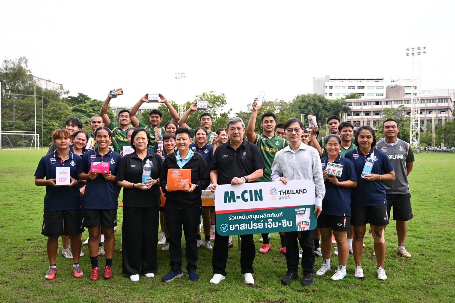 ก่อนการฝึกซ้อม พ.ต.ท.กุลธน ประจวบเหมาะ ยังได้เป็นตัวแทนรับมอบผลิตภัณฑ์ยาสเปรย์ เอ็ม-ซิน กับ ผลิตภัณฑ์ของ บริษัท ไทยนครพัฒนา จำกัด ที่มอบ ครีมกันแดด น้ำเกลือ ยาสามัญ ประจำบ้าน ให้กับนักกีฬารักบี้ทีมชาติไทยชุดซีเกมส์