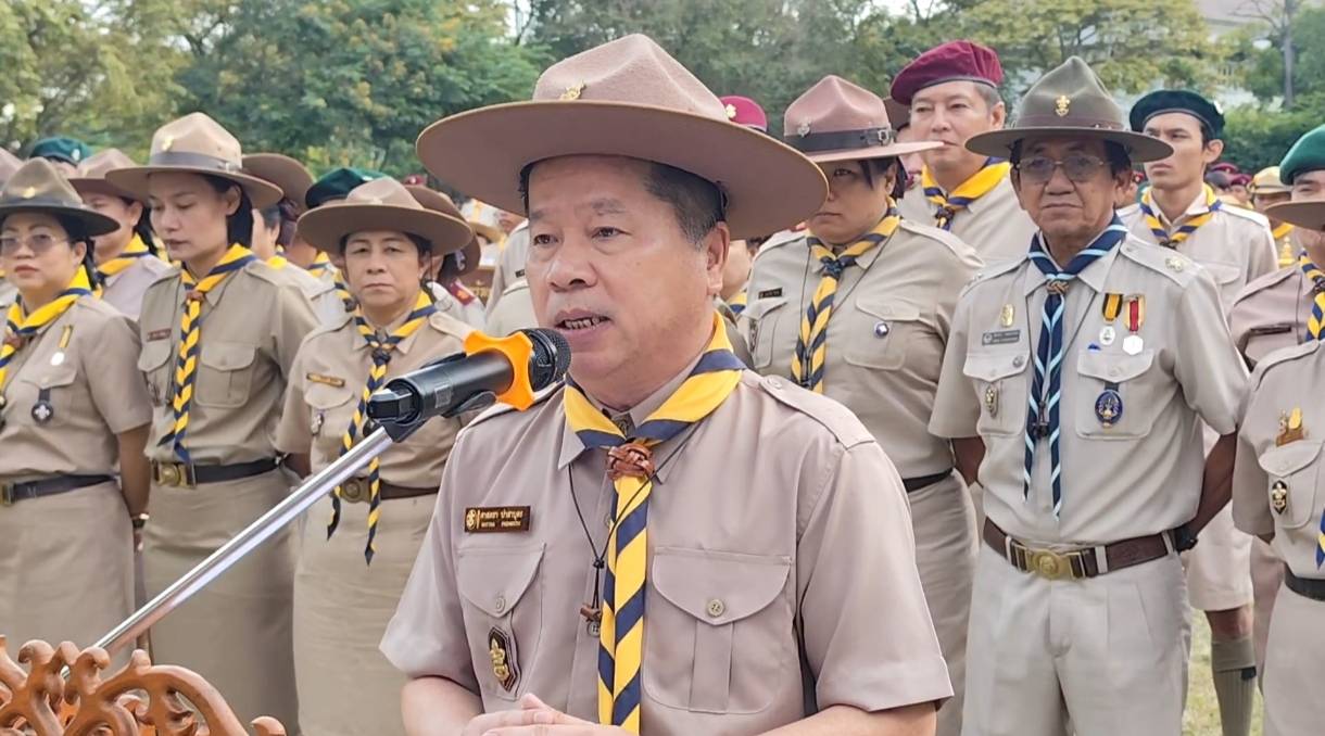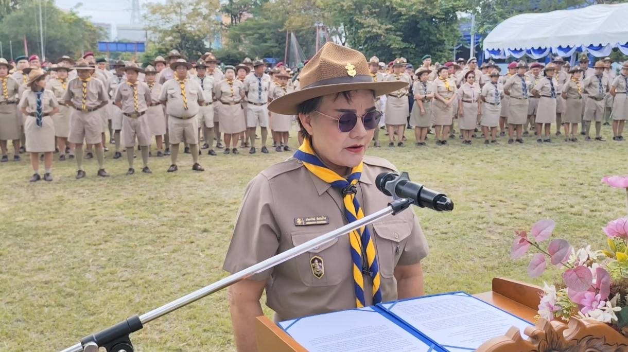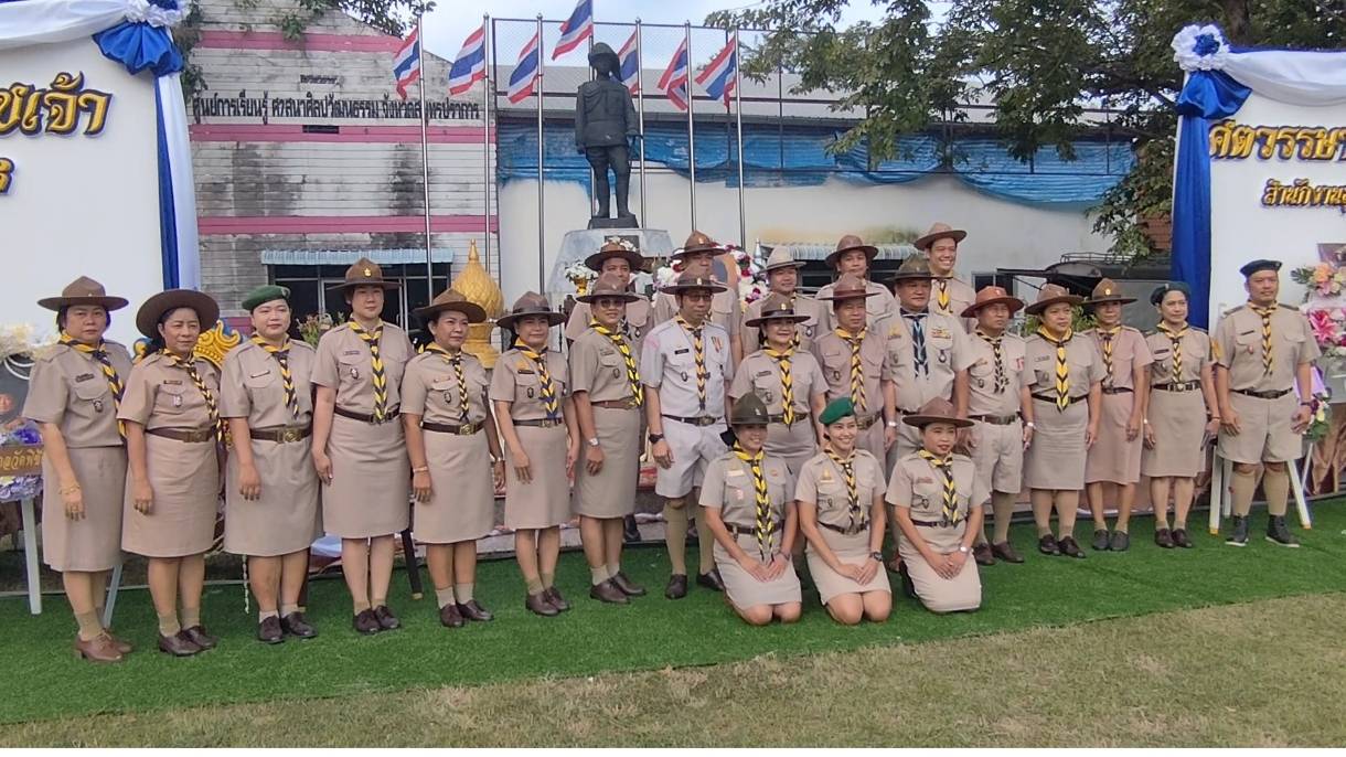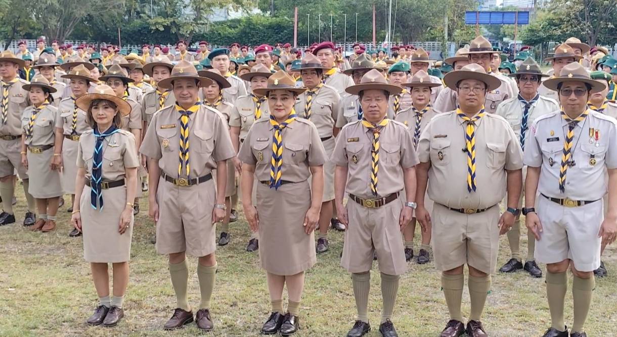 นางนรินทร์รัชต์ สีแก้วน้ำใส ศึกษาธิการจังหวัดสมุทรปราการ นำคณะกองกิจการลูกเสือ-เนตรนารีสมุทรปราการ ร่วมกิจกรรมวันสมเด็จพระมหาธีรราชเจ้า ประจำปี 2568 ในวาระครบรอบ 100 ปี