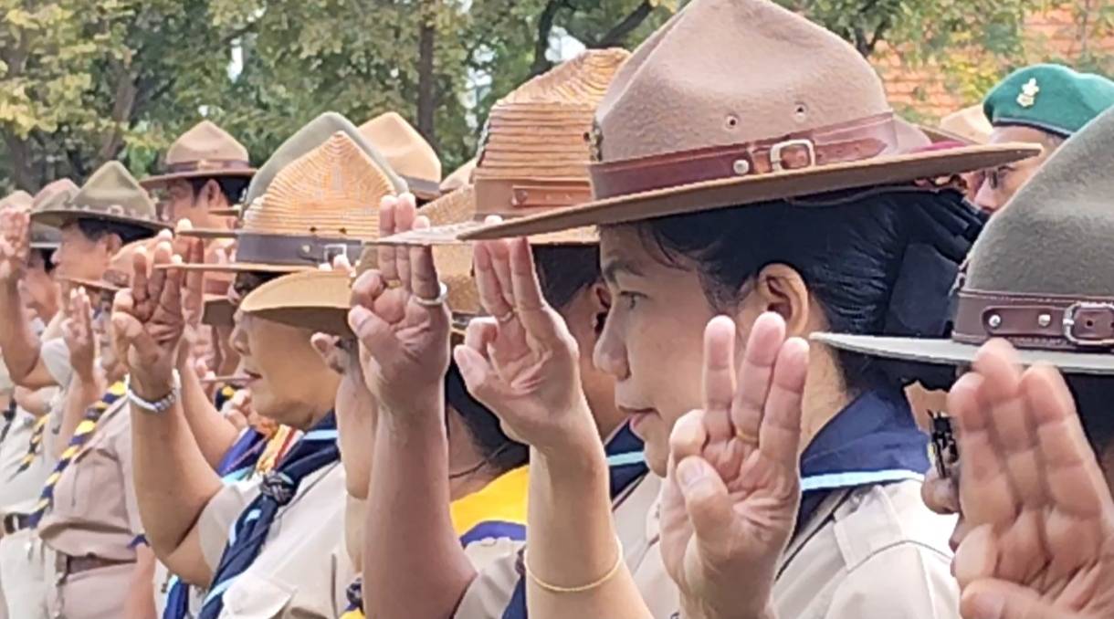 นางนรินทร์รัชต์ สีแก้วน้ำใส ศึกษาธิการจังหวัดสมุทรปราการ นำคณะกองกิจการลูกเสือ-เนตรนารีสมุทรปราการ ร่วมกิจกรรมวันสมเด็จพระมหาธีรราชเจ้า ประจำปี 2568 ในวาระครบรอบ 100 ปี คล้ายวันสวรรคตของพระบาทสมเด็จพระมงกุฏเกล้าเจ้าอยู่หัว รัชกาลที่ 6 พระผู้พระราชทานกำเนิดลูกเสือไทย
