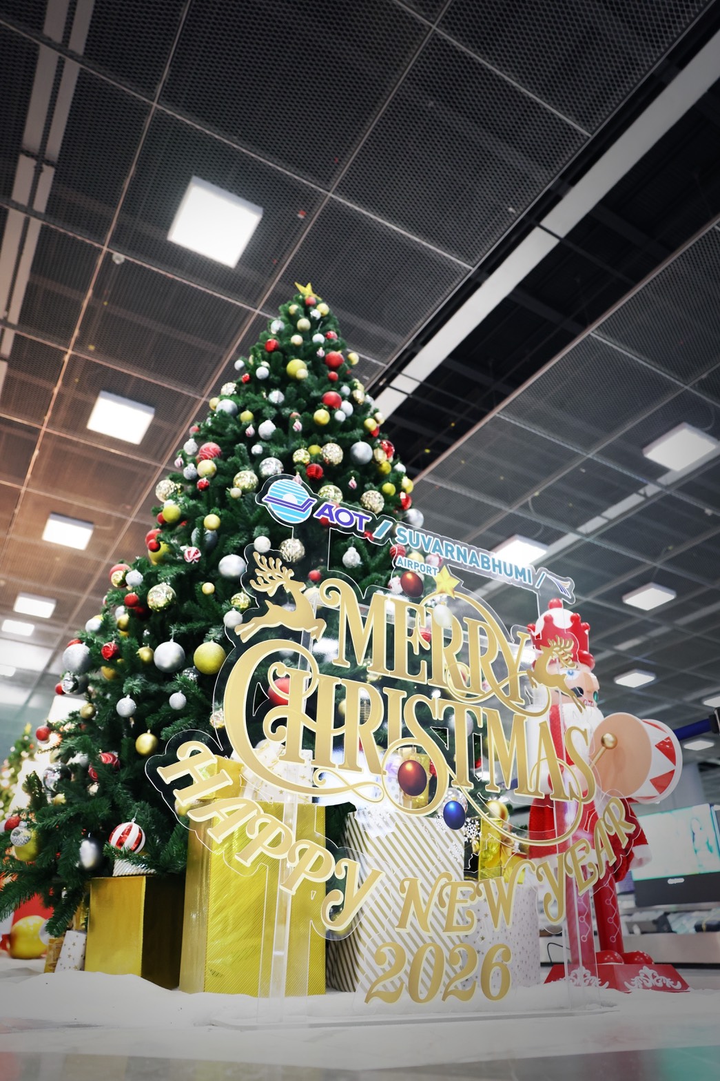 วันที่ 12 ธันวาคม 2568 ท่าอากาศยานสุวรรณภูมิ (ทสภ.) ต้อนรับเทศกาลคริสต์มาสและปีใหม่ 2569 ด้วยการประดับตกแต่งพื้นที่ภายในอาคารผู้โดยสารและอาคารเทียบเครื่องบิน ภายใต้คอนเซ็ปต์ “Glamour X Mas in Warm Red” ถ่ายทอดกลิ่นอายแห่งความสุข ความอบอุ่น และความรื่นเริงในช่วงเทศกาลปลายปี