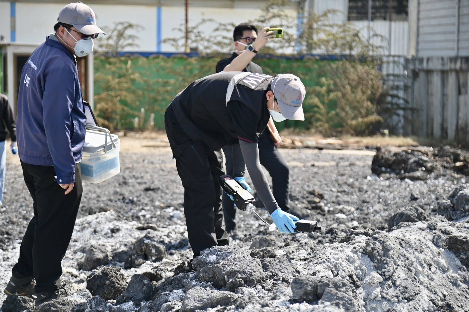 โดยการลงพื้นที่เพื่อสืบหาว่าเป็นสารเคมีของใคร ชนิดใด และหาวิธีกำจัด โดยเกรงว่าจะมีการระเบิดซ้ำอีก ทั้งนี้ทีมเต็มเหนี่ยวรายหนึ่งแจ้งว่า แรงระเบิดที่เกิดจากเพลิงไหม้ทำให้เกิดหลุมขนาดใหญ่ และเกิดการปะทุซ้ำอีกค่อนข้างรุนแรงกว่าครั้งแรก จนทำให้ผนังข้างโรงงานที่อยู่ข้าง ๆ ได้รับผลกระทบจากแรงระเบิดและเปลวไฟความร้อน โดยเบื้องต้นพบว่าพื้นที่เกิดเหตุเป็นของบริษัท เอกชนแห่งหนึ่ง ซึ่งได้สั่งดำเนินคดีตาม พ.ร.บ.โรงงานฯ และ พ.ร.บ.วัตถุอันตรายฯ กับผู้ที่เกี่ยวข้องทั้งหมด รวมจำนวน 2 ราย และหาตัวผู้ลักลอบฝังฯ เพื่อเอาผิดและรับผิดชอบความเสียหาย โดยสันนิษฐานว่าอาจมีของเสียเคมีอาจเป็นวัตถุอันตราย ถูกฝังกลบใต้ดินในพื้นที่ กว้างประมาณ 750 ตารางเมตร มีปริมาณ 1,800 ลูกบาศก์เมตร โดยเจ้าหน้าที่อุตสาหกรรมจังหวัดได้เข้าแจ้งความลงบันทึกประจำวันกับสถานีตำรวจในพื้นที่ไว้แล้ว และกรมโรงงานอุตสาหกรรม ยังได้ดำเนินการเก็บตัวอย่างของเสียดังกล่าวส่งวิเคราะห์ความเป็นอันตราย หากผลเป็นประการใดจะได้ทำการร้องทุกข์กล่าวโทษต่อไป ซึ่งเบื้องต้นได้รับผลทดสอบจากกรมควบคุมมลพิษว่าของเสียวัตถุเคมีอันตรายดังกล่าวมีค่าแมกนีเซียมสูงถึง 48.90 %