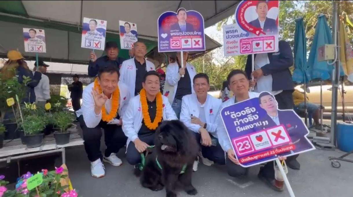 เอกสิทธิ์ คุณานันทกุล หัวหน้าพรรคปวงชนไทย นำทีม 8 ผู้สมัคร สส.จังหวัดสมุทรปราการ ขอพรองค์พระสมุทรเจดีย์ ก่อนจูง “น้องหมูเด้ง” สุนัขพันธุ์เชาเชาสีดำขนฟูลงพื้นที่หาเสียงที่ตลาดน้ำบางน้ำผึ้ง ลั่น ขอรับใช้ชาวสมุทรปราการ คนทราบข่าวแห่ให้การต้อนรับคึกคัก