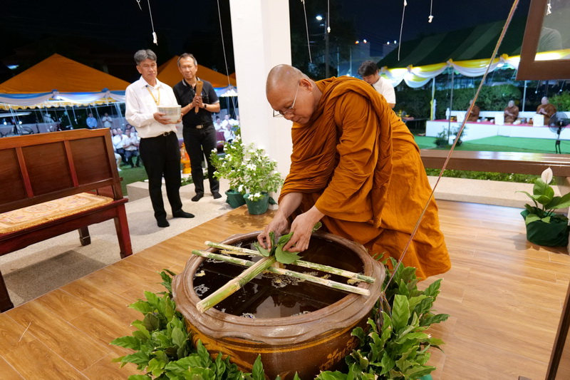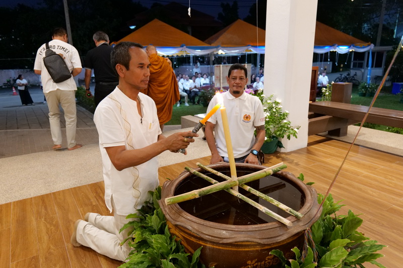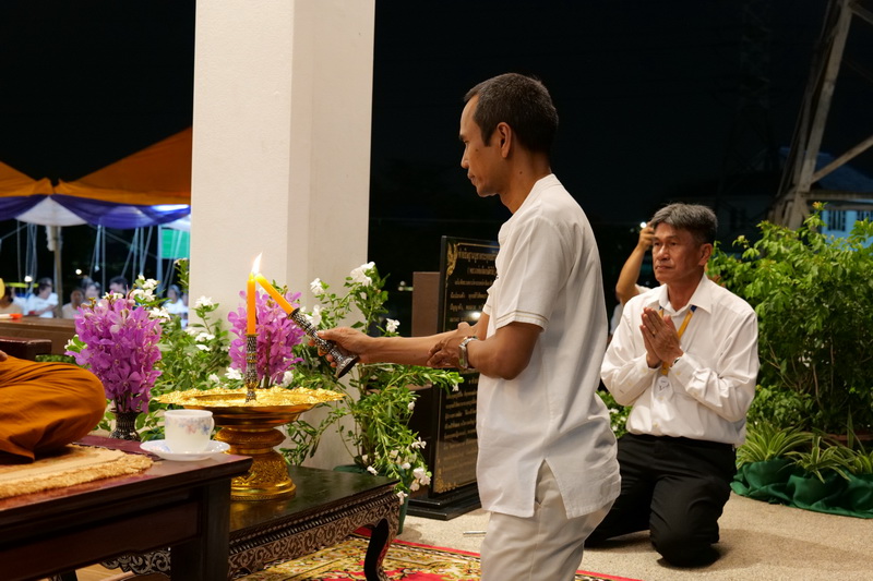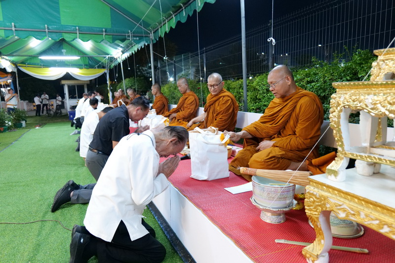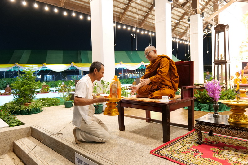เมื่อแสดงธรรมเทศนาแล้วเสร็จ ผู้อำนวยการโรงไฟฟ้าพระนครใต้ ได้ถวายกันเทศน์ จากนั้นจึงทำพิธีถวายไทยธรรม โดยได้รับเกียรติจากผู้บริหาร กฟผ. และ ผู้แทนจากองค์การบริหารส่วนตำบลบางโปรง และพระสงฆ์ได้นำกรวดน้ำและรับพร โดยในช่วงท้าย พระอาจารย์ผดุง ได้นำดับเทียน และพรมน้ำมนต์ให้กับผู้เข้าร่วมงาน เพื่อความเป็นสิริมงคล