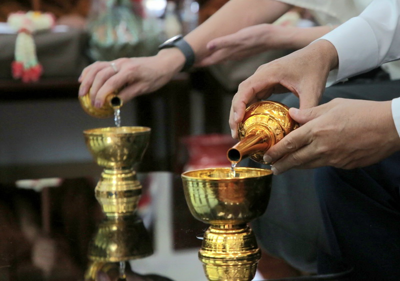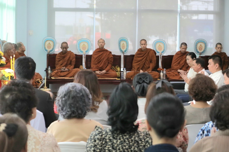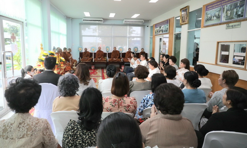 ภายในพิธีได้นิมนต์พระสงฆ์จากวัดอโศการาม จำนวน 9 รูป มาสวดเจริญพระพุทธมนต์เมตราและรับภัตราหารเพล โดยมี นายวิวัฒน์ จันทร์โอภาส ปลัดจังหวัดสมุทรปราการ นายอานนท์ บูรณะภักดี นายอำเภอพระประแดง นายศรายุทธ์ ไชยกอง นายอำเภอบางเสาธง นางกัลยาณี กิจนพเกียรติ รองนายกเหล่ากาชาดจังหวัดสมุทรปราการ พร้อมหัวหน้าส่วนราชการ และคณะกรรมการเหล่ากาชาดจังหวัดสมุทรปราการ เข้าร่วมพิธีกันอย่างพร้อมเพียง
