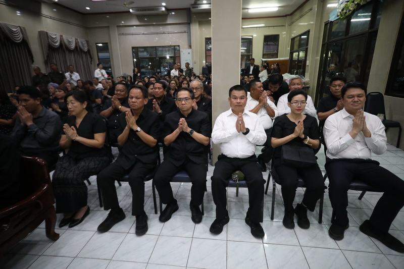 สำหรับค่ำคืนนี้มี นายศุภมิตร ชิณศรี ผู้ว่าราชการจังหวัดสมุทรปราการ มาเป็นประธานพิธีจุดธูปเทียนบูชาพระรัตนตรัย โดยมี นายชาติชาย อุทัยพันธ์ อดีตผู้ว่าราชการจังหวัดสมุทรปราการ เป็นประธานจุดธูปเทียนบูชาตู้พระอภิธรรม และมี ดร.ยงยุทธ สุวรรณบุตร สมาชิกสภาผู้แทนราษฎร สมัยที่ 25 เป็นประธานจุดธูปเทียนที่หน้าหีบศพผู้วายชนม์