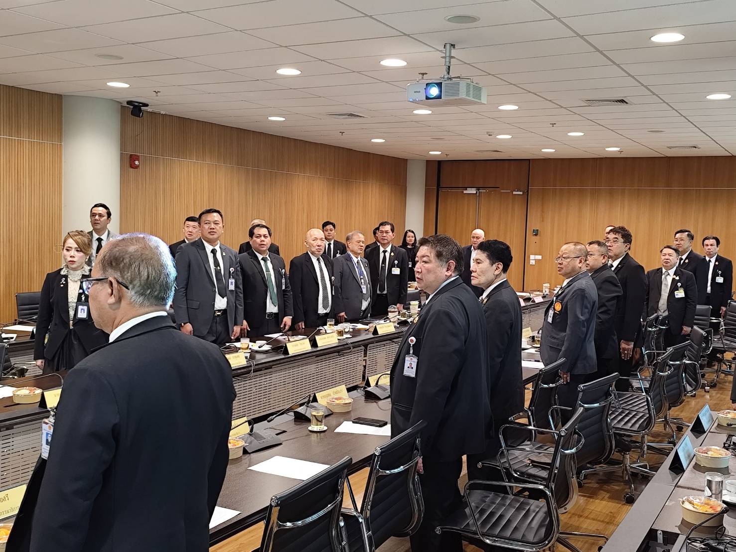 ทั้งนี้ บรรยากาศก่อนการประชุมเป็นไปด้วยความพร้อมเพรียงและสง่างาม โดยสมาชิกคณะกรรมาธิการทุกคนได้ยืนตรงร่วมร้องเพลงชาติและเพลงสรรเสริญพระบารมีด้วยความเคารพ