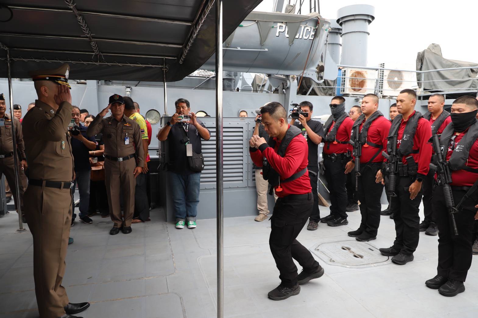 เมื่อเวลา 14.00 น.วันที่ 11 มีนาคม 2569 ที่กองบังคับการตำรวจน้ำ อำเภอเมือง จังหวัดสมุทรปราการ พล.ต.อ.ธัชชัย ปิตะนีละบุตร รองผู้บัญชาการตำรวจแห่งชาติ ซึ่งได้รับมอบหมายให้กำกับดูแลและขับเคลื่อนการปฏิบัติในการปราบปรามการลักลอบน้ำมันเชื้อเพลิงผิดกฎหมายทั่วประเทศ เป็นประธานในพิธีปล่อยเรือตรวจการณ์ “ชัยจินดา” พร้อมกำลังเจ้าหน้าที่ตำรวจน้ำ ออกปฏิบัติภารกิจตรวจตราและสกัดกั้นการลักลอบขนน้ำมันเชื้อเพลิงผิดกฎหมายตามแนวชายฝั่งและเส้นทางทางน้ำสำคัญโดยมี พ.ต.อ.ศราวุฒิ ลิจฉวีราช รองผู้บังคับการตำรวจน้ำ ให้การต้อนรับ
