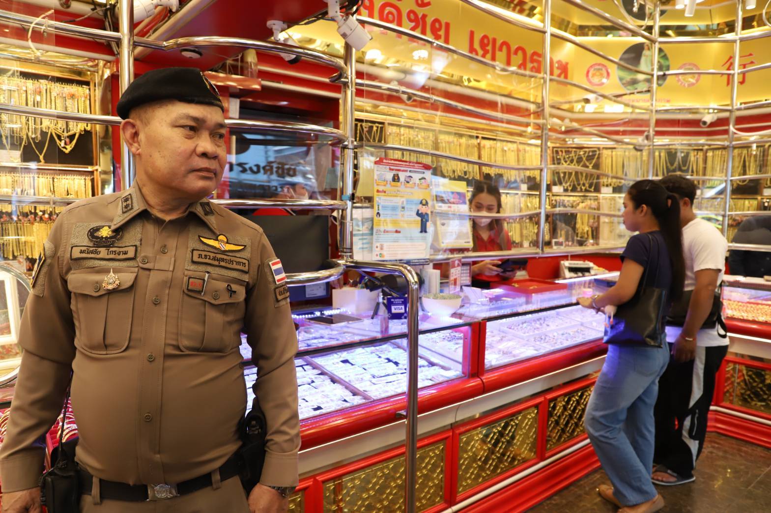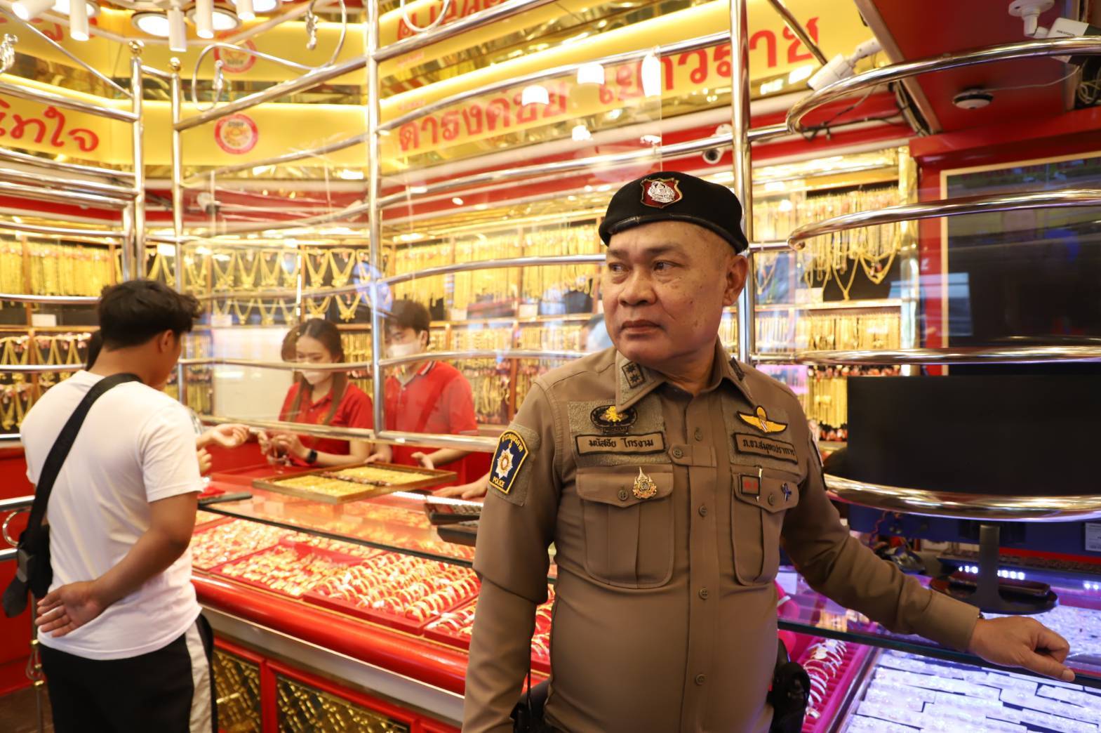ตำรวจสำโรงหนือคุมเข้มร้านทอง หลังราคาน้ำมัน-ทองปรับราคาสูง หวั่นคนร้ายตกอับฉวยโอกาสบุกชิงทอง