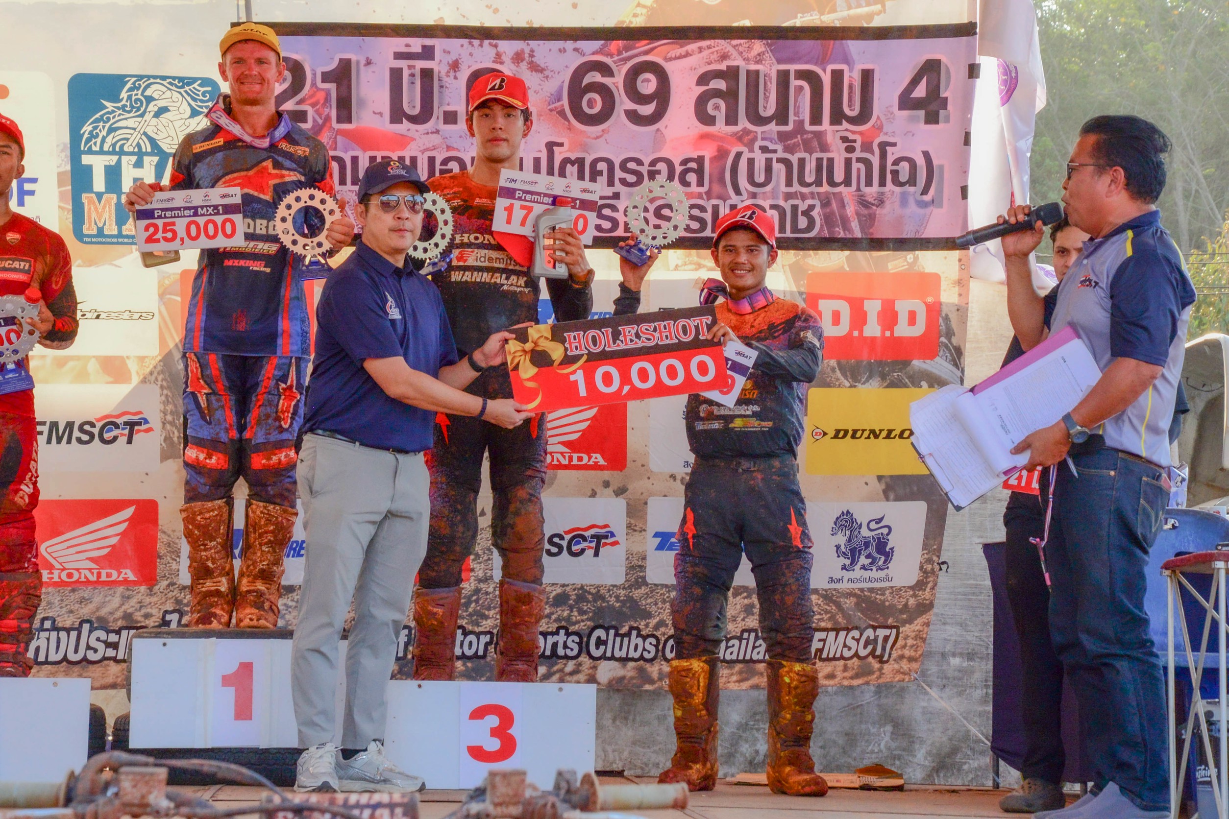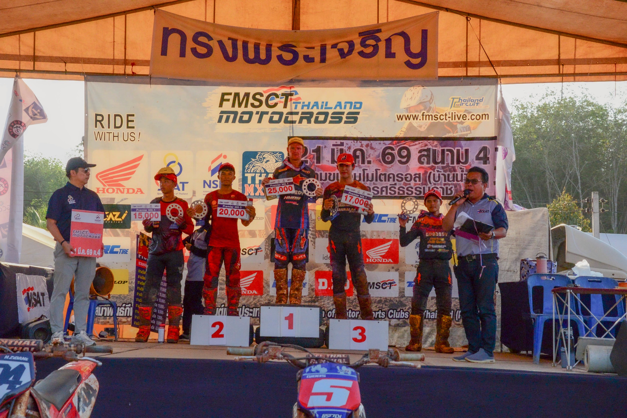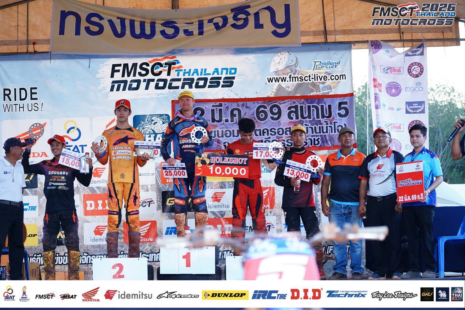 การแข่งขัน FMSCT Thailand Motocross เก็บคะแนนชิงแชมป์ประเทศไทย สนามที่ 5 วันอาทิตย์ที่ 22 มีนาคม 2569 เสือเฒ่าออสซี แรงไม่หยุดทะยานยามาฮ่า YZF450 เป็นที่ 1 ตลอด 5 สนาม ที่ผ่านมาแบบไร้คู่แข่ง ม้ามืดดาวรุ่งจากอินโดนีเซีย Mohammad Zidane Alnesa Pratama ควบดูคาติ พันตูนีโม& จิรัฎฐ์ วรรณลักษณ๋ (ฮอนด้า-1) ในรอบที่ 2 นักแข่งดัง ภานุพงศ์ สมสวัสดิ์ (ฮอนด้า) และปิยะนัฐ เกิดศิริ (คาวาซากิ) ปะทะกันกลางอากาศเจ็บทั้งคู่