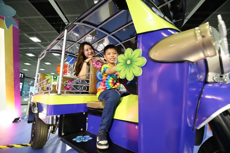จากทั่วโลกในช่วงเทศกาลสงกรานต์และถ่ายทอดเอกลักษณ์ความเป็นไทย ให้แก่นักเดินทางจากทั่วโลก สำหรับการตกแต่ง ทสภ. ได้จัดจุดถ่ายภาพหลักบริเวณโถงสายพานรับกระเป๋าที่ 11 และ 12 ผู้โดยสารขาเข้าระหว่างประเทศ โดยออกแบบแลนด์มาร์กสะท้อนอัตลักษณ์ความเป็นไทย อาทิ เสาชิงช้า พระปรางค์วัดอรุณราชวราราม และรถตุ๊กตุ๊ก เพื่อสร้างความประทับใจตั้งแต่ก้าวแรกที่เดินทางมาถึงประเทศไทย รวมถึงเป็นจุดเช็กอินแรกของการเดินทาง อีกทั้งได้อัญเชิญพระพุทธรูปมาประดิษฐานให้ผู้โดยสารได้สรงน้ำพระ เพื่อความเป็นสิริมงคล บริเวณริมกระจกระหว่างประตู 4 – 5 ห้องโถงผู้โดยสารขาออก ชั้น 4 อาคารผู้โดยสาร ทสภ.
