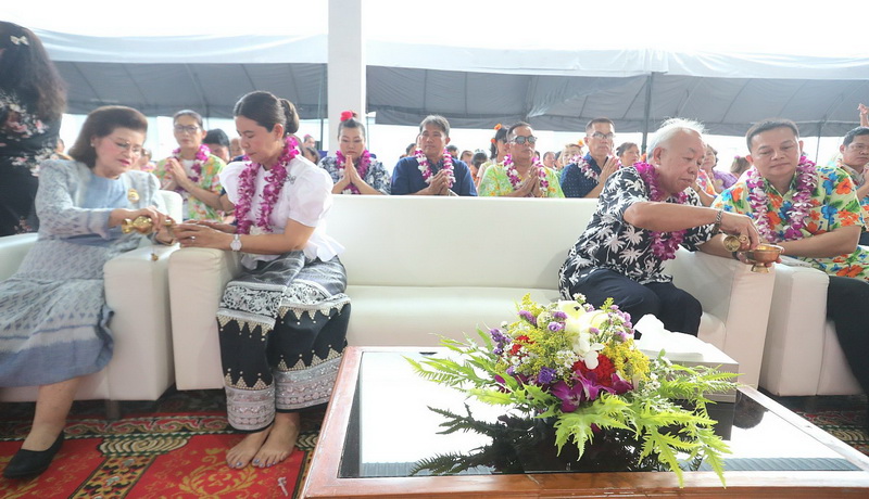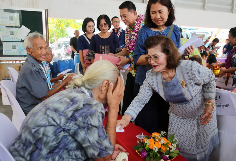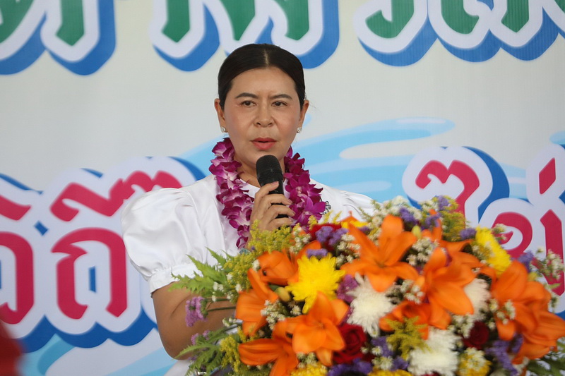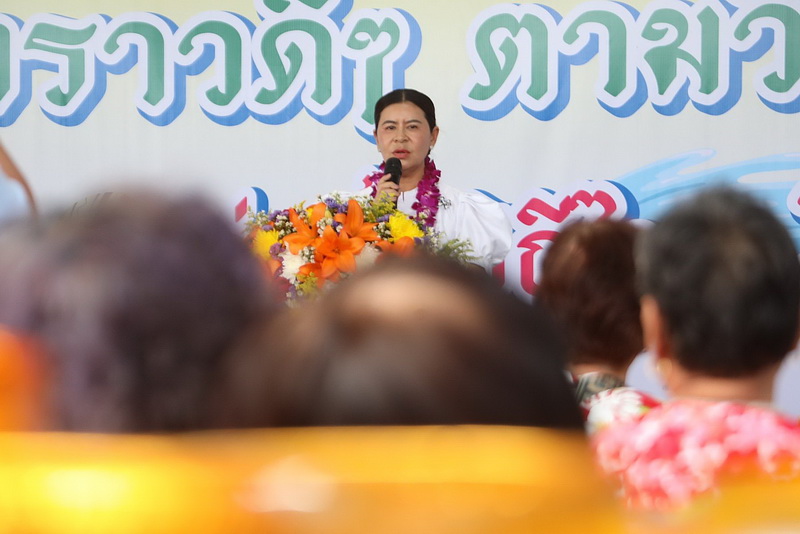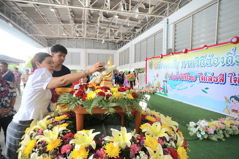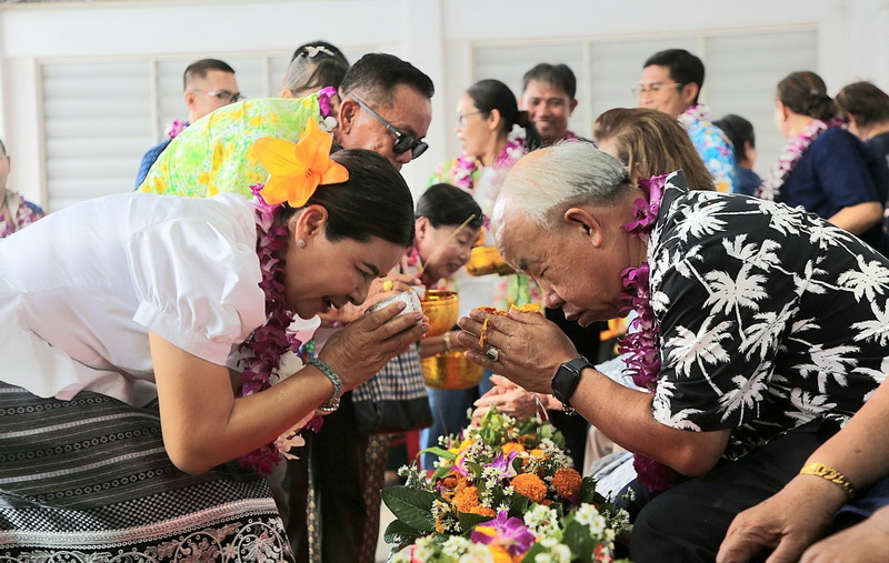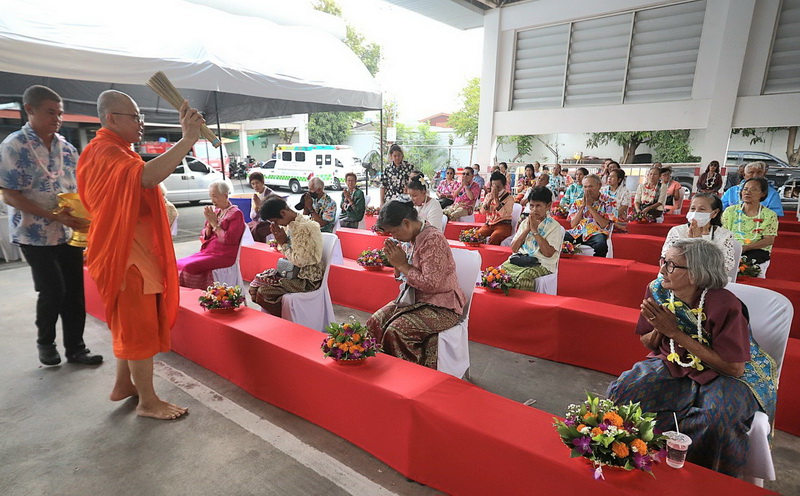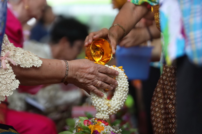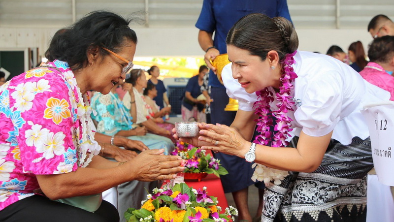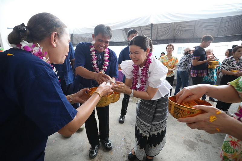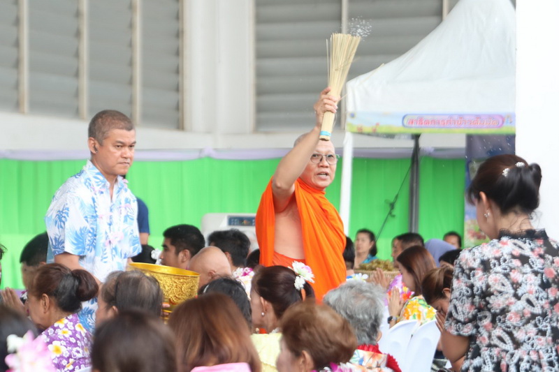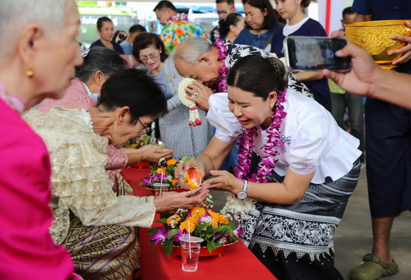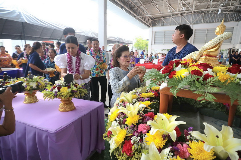 ต่อจากนั้นดร.วีร์สุดา รุ่งเรือง นายกองค์การบริหารส่วนตำบลบางพลีใหญ่ ประธานพิธีสรงน้ำพระและรดน้ำดำหัวผู้สูงอายุ พร้อมคณะผู้บริหาร