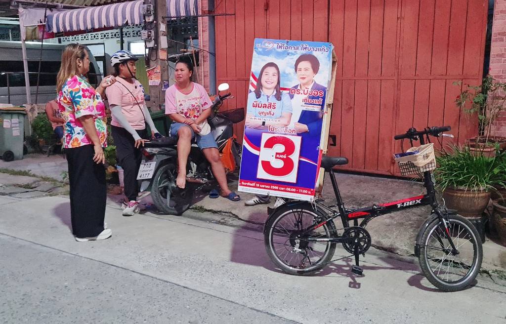 ผู้สมัครสมาชิกสภาเทศบาลเมืองบางแก้ว เบอร์ 3 กลุ่มให้..บางแก้ว ปั่นจักรยานหาเสียง ชูแนวคิดลดการใช้พลังงาน และเข้าถึงประชาชนอย่างใกล้ชิด
