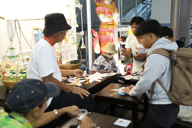 การร้อยพวงมาลัยคล้องคอ และการสาธิตทำว่าวใบไม้ และว่าวจุฬา ซึ่งได้รับความสนใจจากผู้โดยสารอย่างต่อเนื่อง ตลอดทั้งวัน สะท้อนถึงเสน่ห์ของความเป็นไทยที่สร้างความประทับใจแก่นักเดินทางจากทั่วโลก