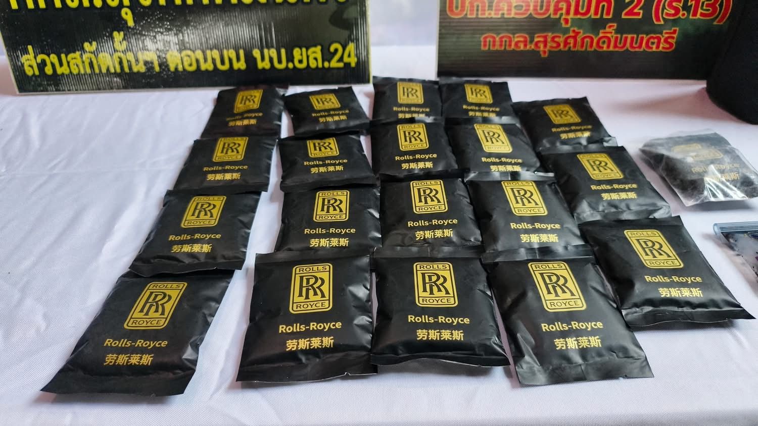 โดยตรวจพบยาเสพติดให้โทษประเภท 1 (Happy Water) จำนวน 40 หีบห่อ น้ำหนักรวม 3,000 กรัม มูลค่าโดยประมาณ 80,000 บาท (แปดหมื่นบาทถ้วน)