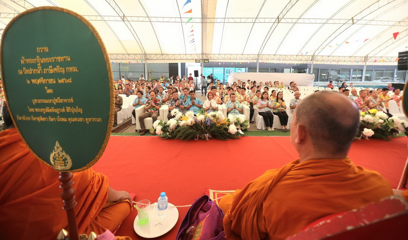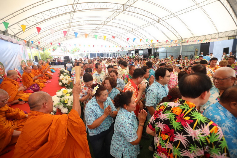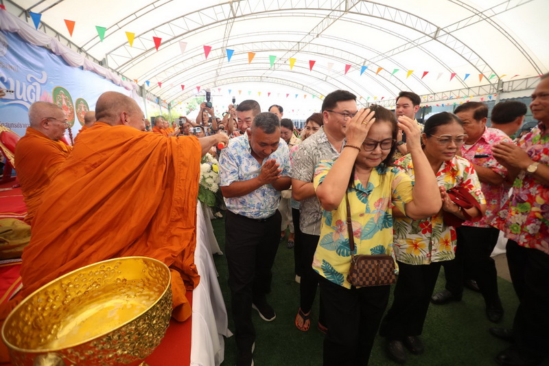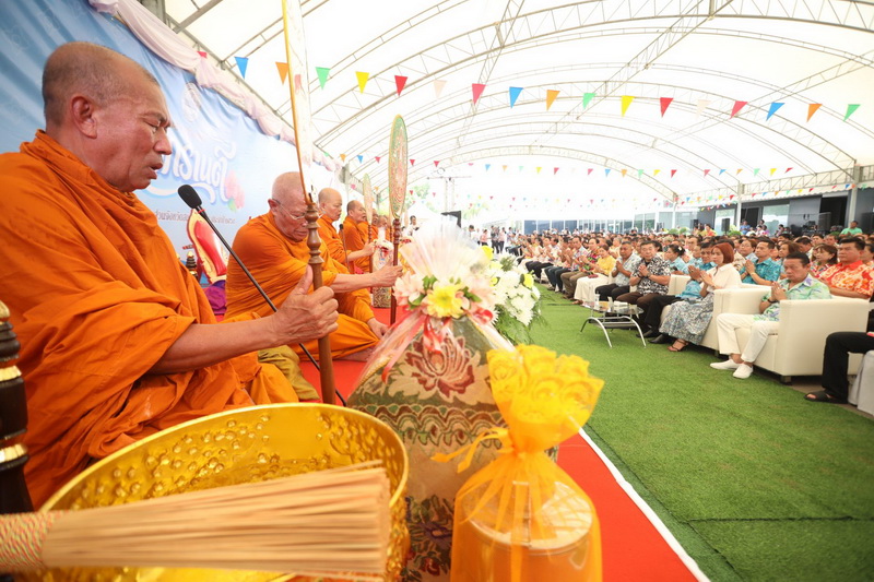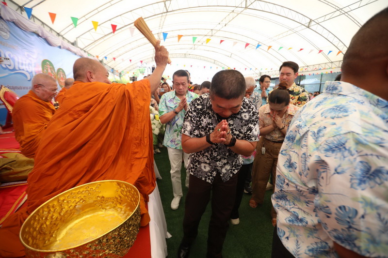 โดยได้รับความเมตตาจาก พระราชสมุทรวัชราจารย์ เจ้าคุณบุญสืบ เจ้าอาวาสวัดกลางวรวิหาร พระอารามหลวงชั้นโท เป็นประธานฝ่ายสงฆ์ นำคณะพระสงฆ์ วัดกลางวรวิหาร เจริญพระพุทธมนต์ ประพรมน้ำพระพุทธมนต์ เพื่อความเป็นสิริมงคล ให้กับผู้ที่มาร่วมงาน