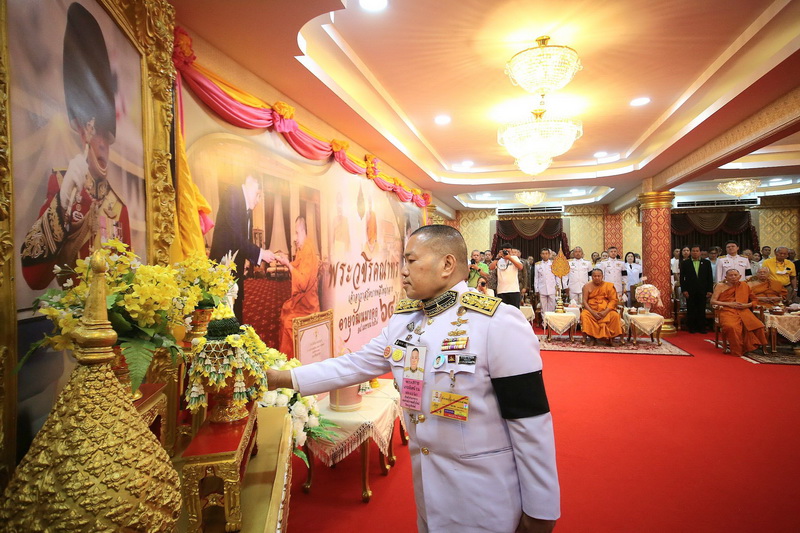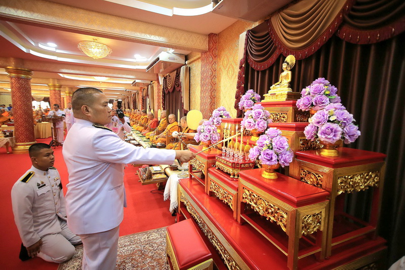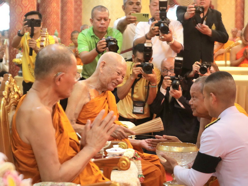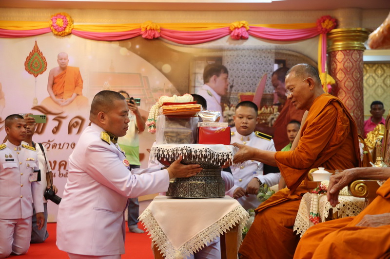 สมุทรปราการ-พระบาทสมเด็จพระเจ้าอยู่หัว ทรงพระกรุณาโปรดเกล้าฯ พระราชทานผ้าไตรในพิธีทำบุญอายุวัฒนมงคล 64 ปี พระวชิรคณาทร