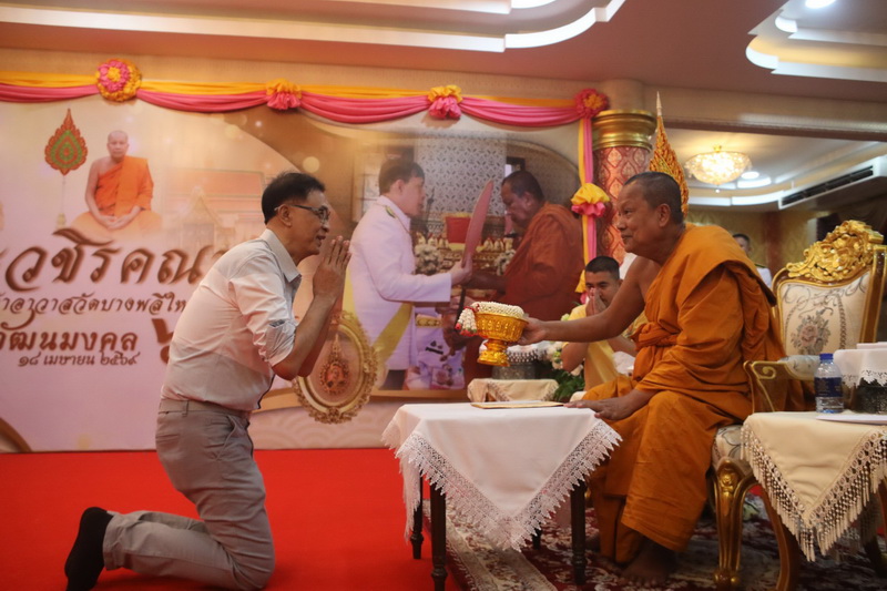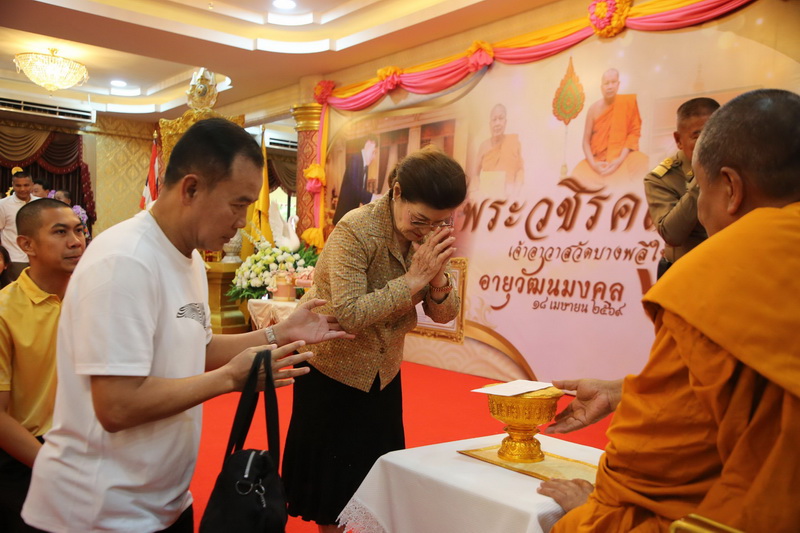 โดยมี นายขจิตเวช แก้วน้อย นายอำเภอบางพลี หัวหน้าส่วนราชการ ผู้นำท้องถิ่น ผู้อำนวยการโรงพยาบาล ผู้อำนวยการสถานศึกษา เจ้าหน้าที่สำนักพุทธศาสนาจังหวัดสมุทรปราการ คณะแพทย์พยาบาล ข้าราชการตำรวจ ประชาชน และคณะสงฆ์ทรงสมณศักดิ์เข้าร่วมพิธี และกราบถวายมุทิตาสักการะ