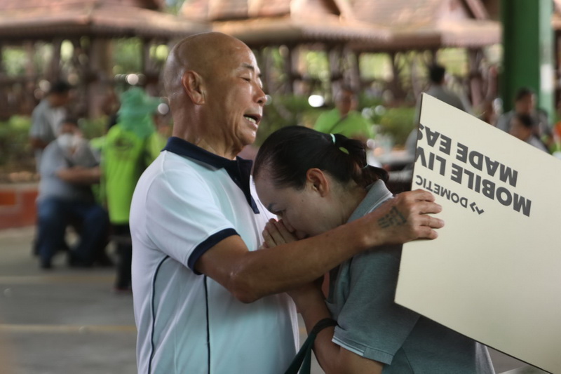 ซึ่งขณะนี้ทางบริษัทได้ทยอยจ่ายเงินให้พนักงานลูกจ้างไปแล้ว กว่า 300 คน ตามกฎระเบียบการดูแลลูกจ้างของกฎหมายแรงงาน อีกทั้ง ในวันนี้ตนเองยังได้สั่งอาหาร มาเลี้ยงส่งพนักงานลูกจ้าง หลังจากทยอยจ่ายเงินให้พนักงานในส่วนที่ยังตกค้างอยู่ให้ครบเสร็จสิ้น และในส่วนพนักงานบางคนหรือบางกลุ่มที่ใจร้อนและได้ใช้คำพูดถ้อยคำใส่ร้ายหรือคิดไม่ดีกับตนเองก็ขออโหสิกรรมให้ทั้งหมดและไม่ถือโทษเอาความแต่อย่างใด อีกทั้ง ในวันนี้ทางบริษัทโคมอสได้มอบอุปกรณ์ ประเภท แบร์ริเออร์ กรวยพลาสติก และเสื้อผ้าแบรนด์เนม มอบให้กับทางมูลนิธิร่วมกุศลสมุทรปราการ เพื่อนำไปใช้ให้เกิดประโยชน์แก่สังคมอย่างสูงสุดต่อไป และในส่วนประเภทเหล็กโครงสร้างที่ไม่ได้ใช้จากการปิดกิจการลง ทางบริษัทก็จะนำไปขายทอดตลาดเป็นเศษเหล็กเพื่อนำเงินมาจ่ายเยียวยาให้แก่พนักงานที่ยังไม่ได้รับเงินเยียวยาต่อไป