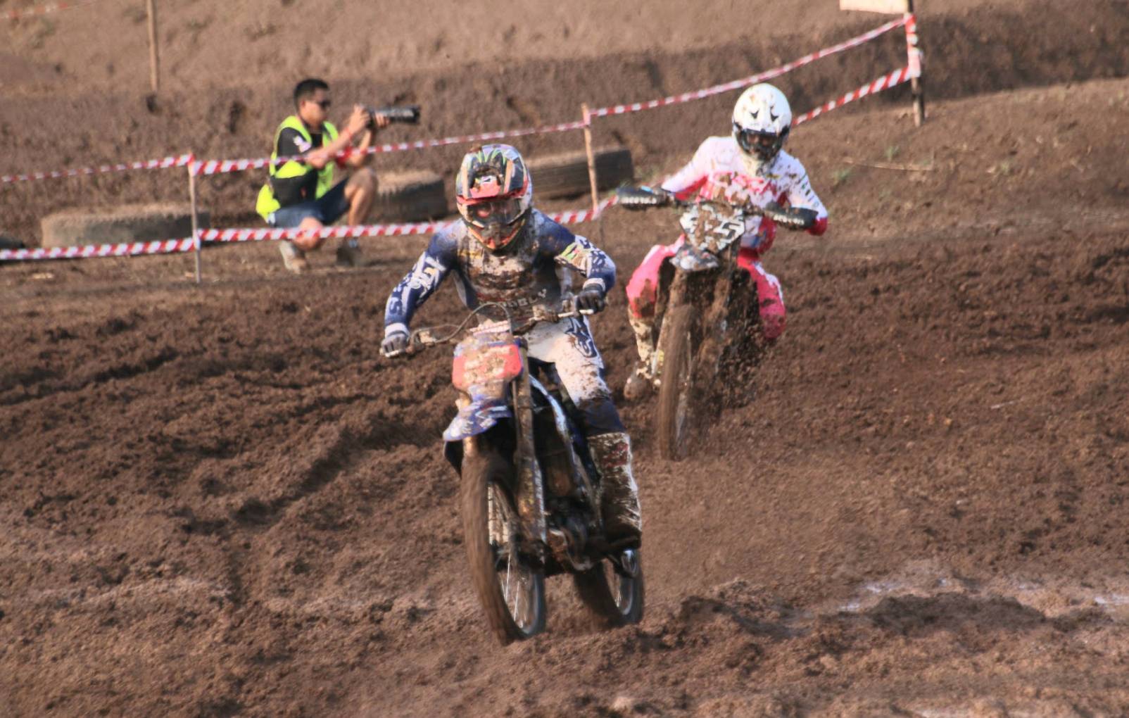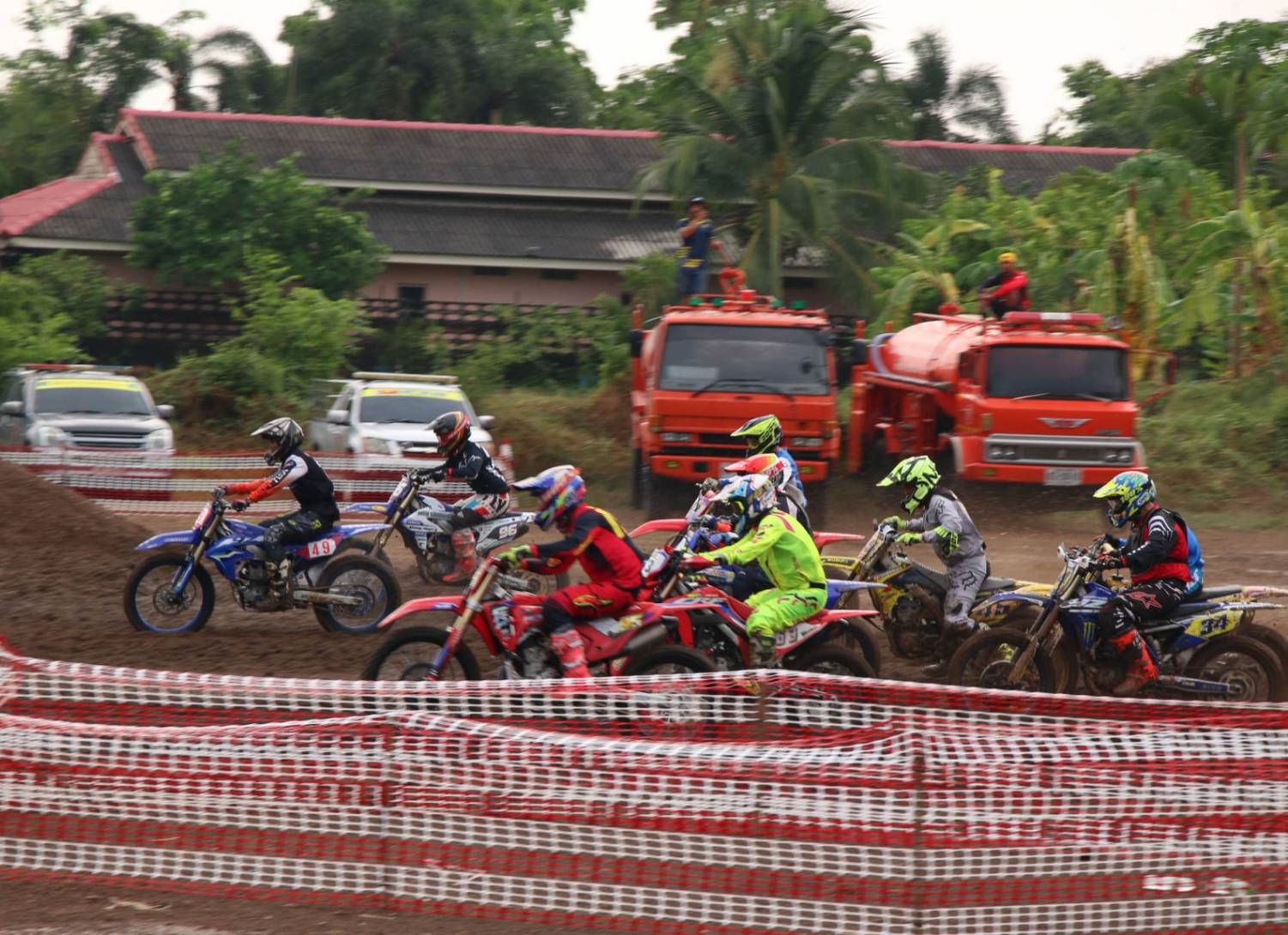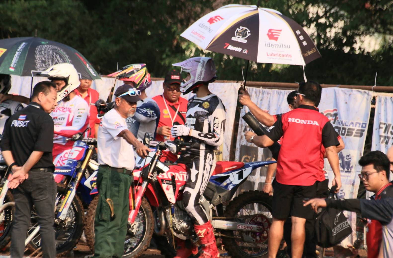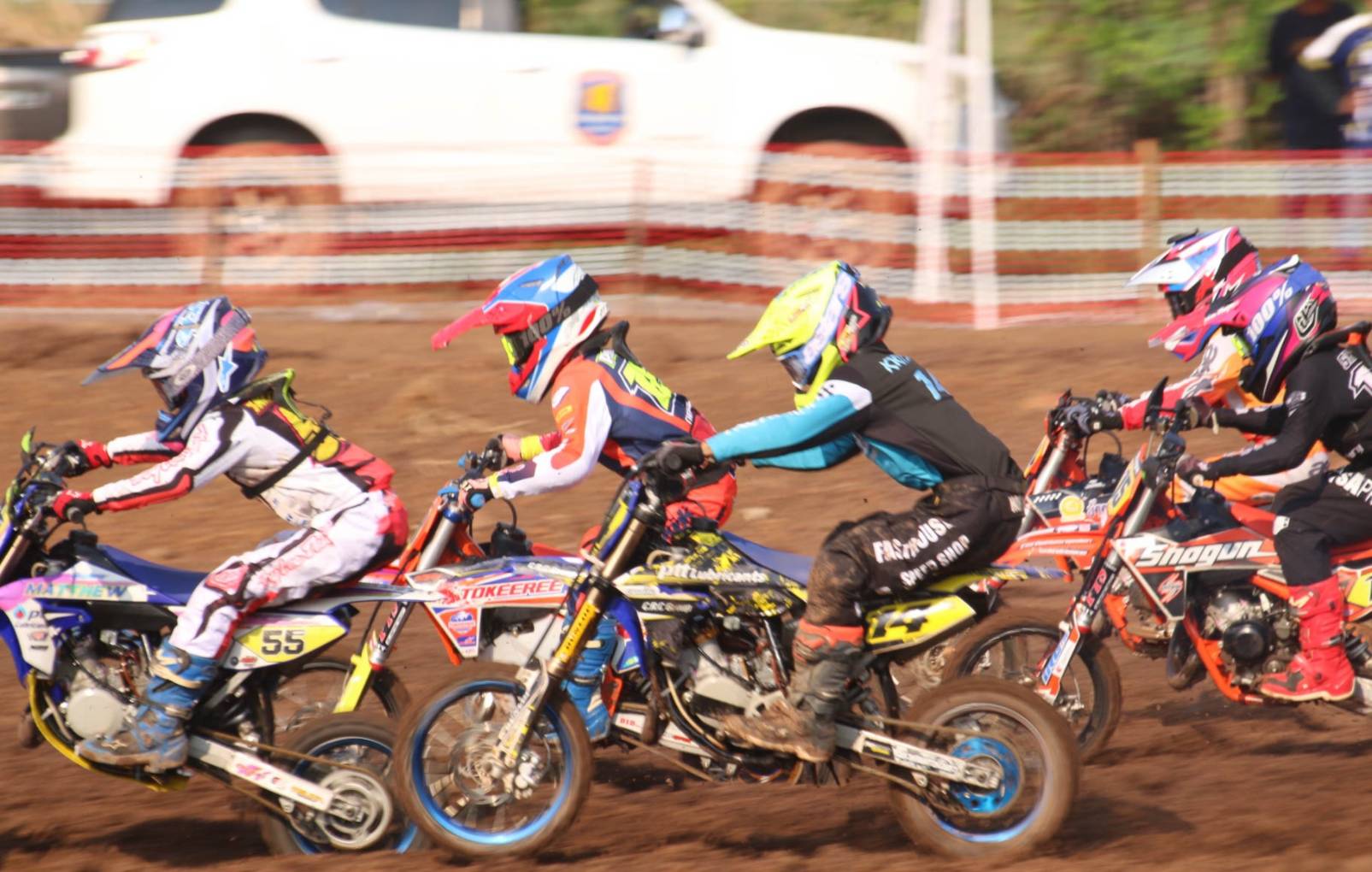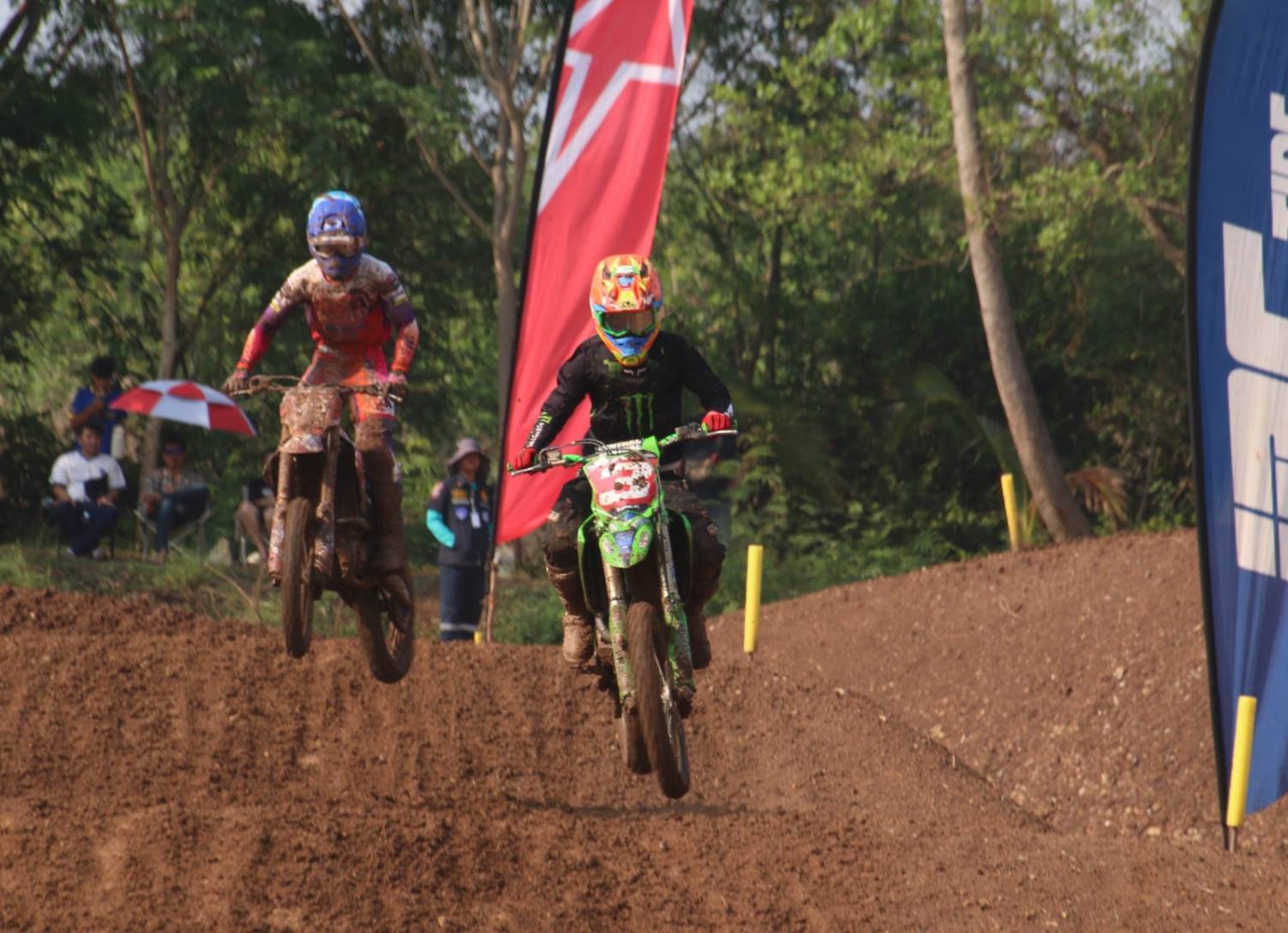 การแข่งขันในPremier MX1 แข่งขันในสภาพลื่นโคลนในช่วงก่อนเวลาถ่ายทอดสด ทันทีที่เกทล้มลง รถหมายเลข 325-เดลวินเตอร์ อัลฟาริซี ยอดนักบิดชาวอินโดนีเซีย คว้าโฮลช็อตได้สำเร็จ โดยมี รถหมายเลข 5-เคิร์ก กิ๊บ ผู้ชนะ 5 สนามรวดตามมาติดๆ, รถหมายเลข 1-นีโม่ จิรัฎฐ์ วรรณลักษณ์ ดับเบิ้ลแชมป์ประเทศไทยจากทีมฮอนด้า วรรณลักษณ์ น้ำมันเครื่องอิเดมิตสึ อยู่ในกลุ่มกลาง และรถหมายเลข 55-ปรีดาอนันต์ บูน ล้มคว่ำตั้งแต่โค้งแรก